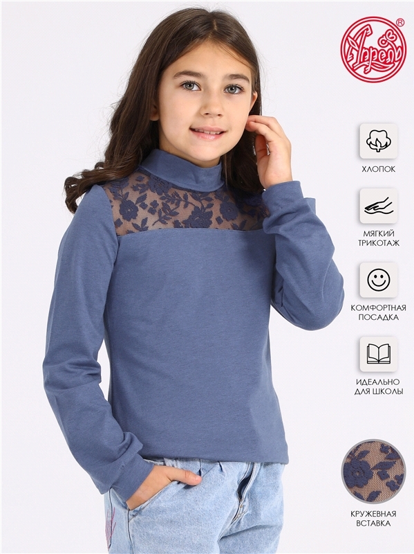 Состав: кулир с лайкрой / хлопок 92% + лайкра 8%. Водолазка для девочки выполнена из кулира - легкого хлопкового полотна с лайкрой. Изделие с длинными рукавами на манжетах, украшено кокеткой из тонког... Показать описаниео ажурного полотна. Незаменимый предмет гардероба для юных школьниц! Уход: только машинная стирка (руками не стирать!) при температуре 40 градусов, без предварительного замачивания.