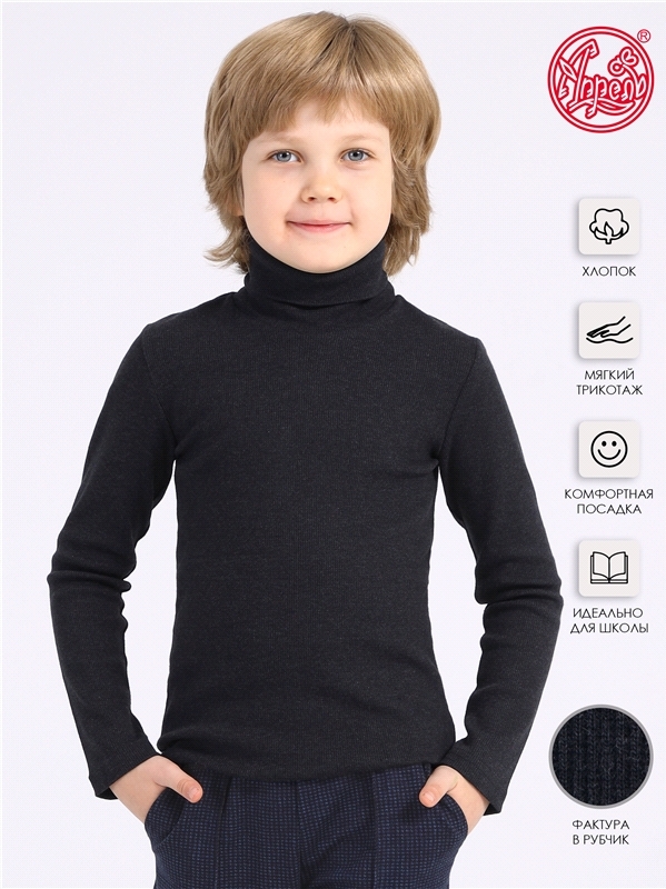 Состав: ластик / хлопок 68% + ПЭ 27% + лайкра 5%. Водолазка для мальчика выполнена из эластичного хлопкового полотна в рубчик. Отличный вариант для школьника на каждый день! Уход: только машинная стир... Показать описаниека (руками не стирать!) при температуре 40 градусов, без предварительного замачивания.