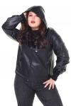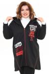 Ветровка трикотажная с капюшоном с надписью сбоку черная Стильная удлиненная ветровка из мягкого трикотажа без подкладки. Застёгивается на молнию по всей длине. Объемный капюшон на шнурках-завязках от... Показать описаниелично защитит от ветра. Приспущенные рукава имеют длину 7/8. Объёмный накладной карман сбоку добавляет практичности. Серебристые надписи по переду и декоративные строчки добавляют модели динамичности и женственности. Удлиненная спинка способствует оптимальной посадке по фигуре. Необработанные края придают изделию модный эффект незавершенности. В прохладную погоду ветровка не только защитит от холода, но и поможет остаться стильной и женственной. Длина изделия 50 размера по спинке - 81 см. В каждом следующем размере длина увеличивается.