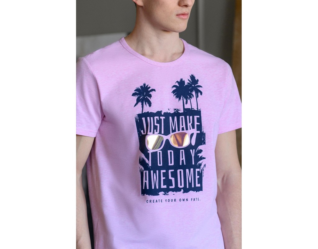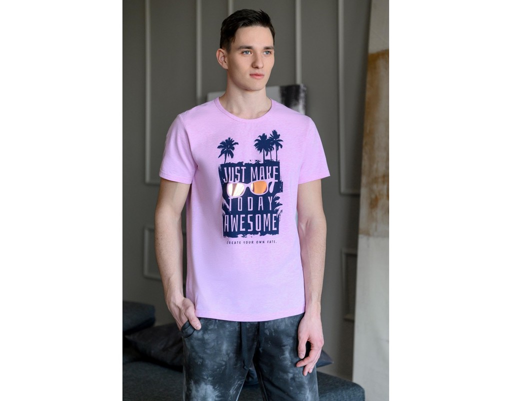 Футболка с коротким рукавом, на полочке принт.