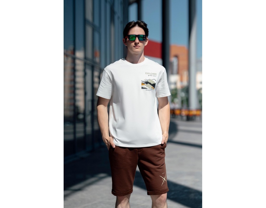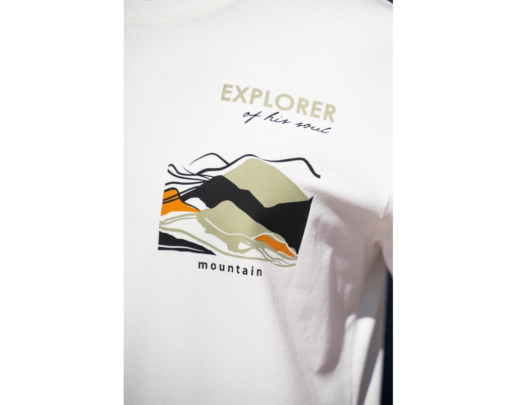 Футболка с коротким рукавом, на полочке принт "ГОРЫ"Футболка с коротким рукавом, на полочке принт "ГОРЫ"