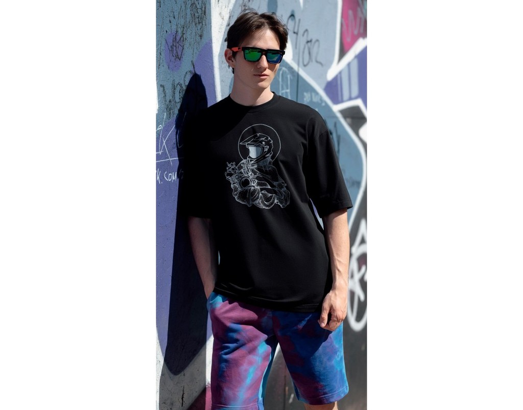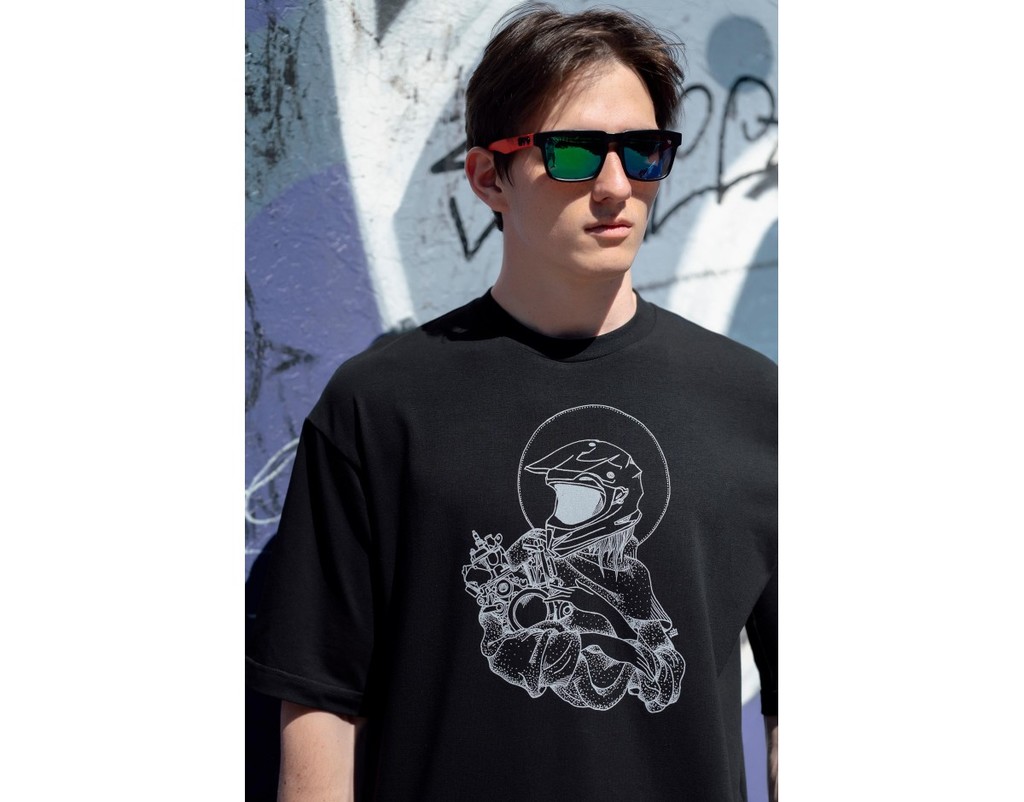 Футболка с коротким рукавом, на полочке принт "мадонна с мотором"