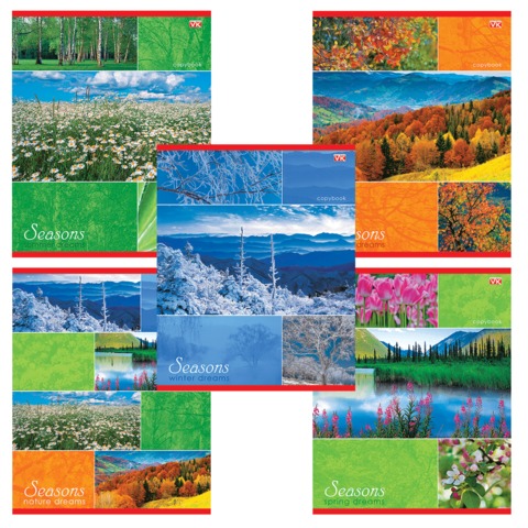 Тетрадь 48 листов (клетка) Времена года, картонная обложка, арт. 402323