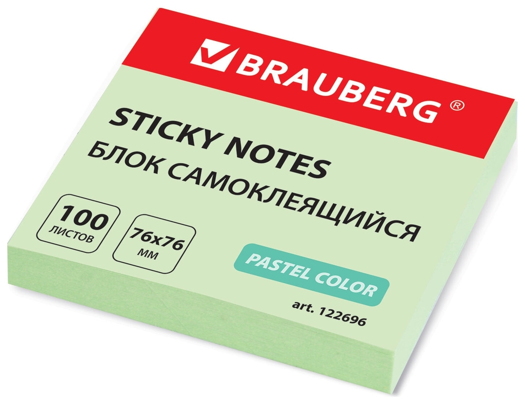 Стикер с клеевым краем Brauberg зеленый (76х76мм) 100л, арт. 122696 Вопросы по товару
