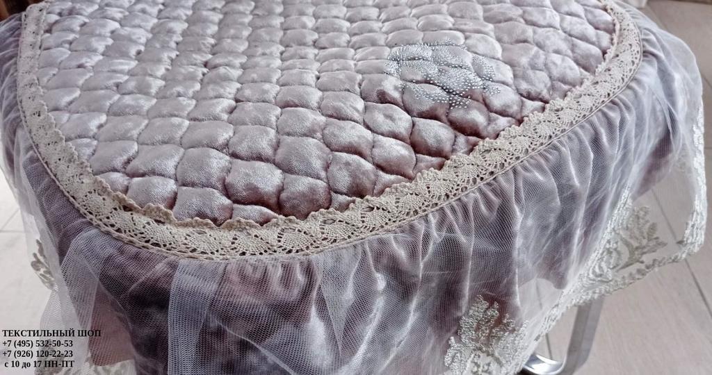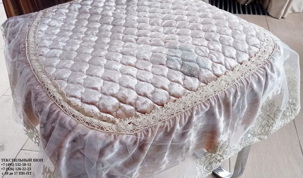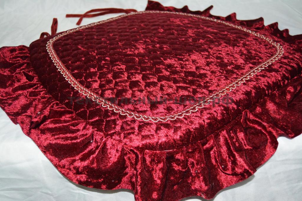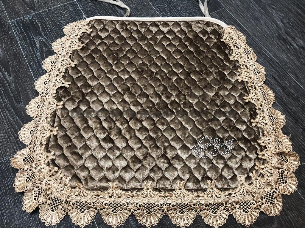 Размер: по горизонтали 46 см, по вертикали 43 см. Оборка 4 см. Производитель: Китай Состав: велюр, изнанка хлопок. Дополнительная информация: стежка, украшена стразами. Характеристика товара: с 2 вере... Показать описаниевочками.