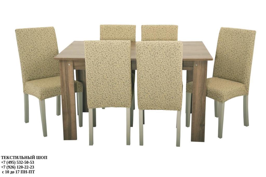 Состав: Полиэстер 100% Цвет: Бежевый Растяжимость чехла по спинке: от 40 до 55 см. Растяжимость чехла по сиденью: от 35 до 45 см. Стирка: машинная, 30 градусов Чехол "Жаккард" без оборки из трикотажно... Показать описанией ткани, обладающий высокой плотностью и, при этом очень мягкий и хорошо растягивающийся, подойдет на стул практически любой конфигурации стандартного размера. Разнообразие расцветок и рисунков, а так же наличие чехлов для диванов и кресел, позволит вам без труда украсить интерьер, защитить мебель от повреждений и уберечь от загрязнений.