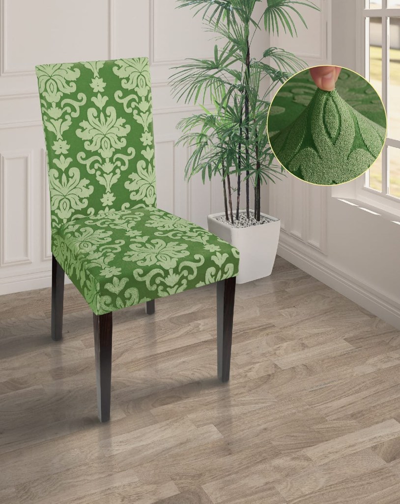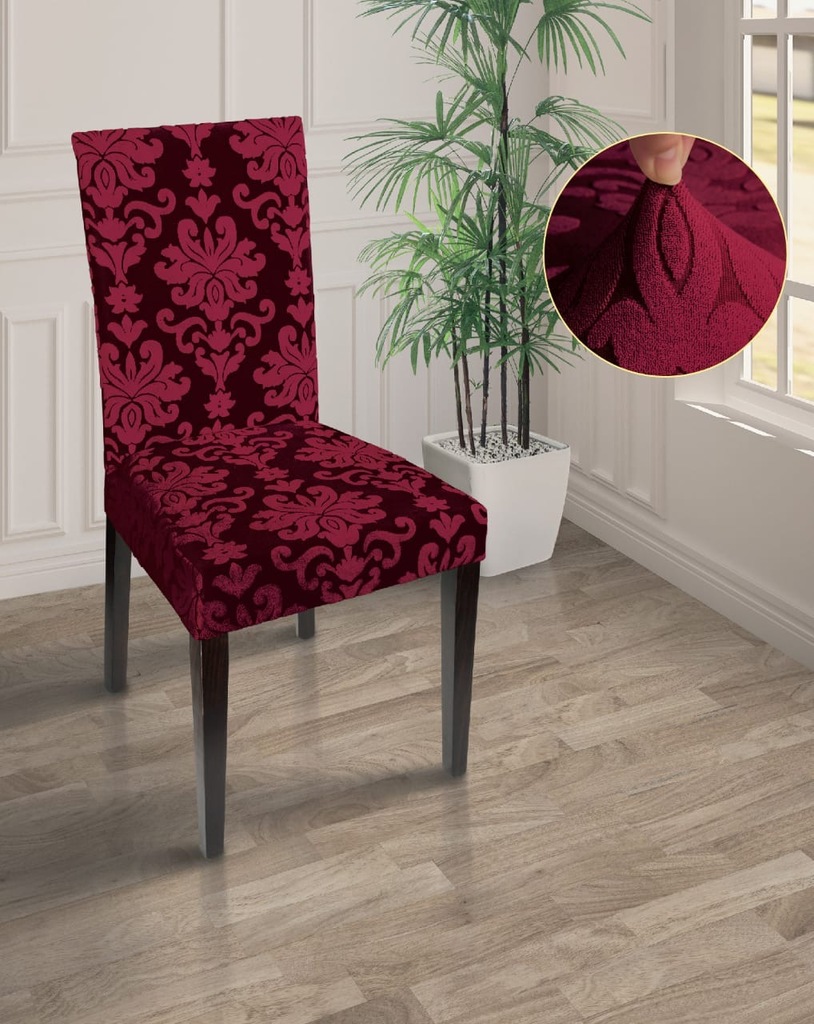 Состав: Полиэстер 100%. Растяжимость чехла по спинке: от 40 до 55 см. Растяжимость чехла по сиденью: от 35 до 45 см. Стирка: машинная, 30 градусов Вес: 0.4 кг. Чехол "Жаккард" с оборкой из трикотажной... Показать описание ткани, обладающий высокой плотностью и, при этом очень мягкий и хорошо растягивающийся, подойдет на стул практически любой конфигурации стандартного размера. Разнообразие расцветок и рисунков, а так же наличие чехлов для диванов и кресел, позволит вам без труда украсить интерьер, защитить мебель от повреждений и уберечь от загрязнений.