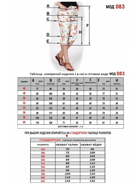 Доступность: в наличии; Производитель: Abbi; Страна производства: Беларусь; Артикул: 955096; Размеры: 46 - 62; Материал: Вискоза 60%, хлопок 35%, эластан 5%; Сезон: Весна, Лето. Классические брюки, ср... Показать описаниеедней посадки с боковыми карманами. Пояс с эластичной тесьмой, без застежки. Сочетается с блузой, жакетом, джемпером, так же ретро casual в городском стиле отлично впишется в образ с этой моделью, как и школьный или офисный образ, как и для ежедневного и праздничного настроения. Брючки один из наиболее функциональных предметов современной женщины! Разнообразие оттенков данной модели позволяет подобрать цвет на любой вкус. Они подойдут для в пляжной, спортивной прогулки на природе. Так же подходят девушкам - подросткам. Однотонные оттенки и мягкий дышащий материал с гипо-аллергенным эффектом для защиты тела в холодную погоду зимой и для высоких температур летом, осенью и весной. Представлены в базовых цветах. Легкий уход - деликатная стирка не 30 градусов без отбеливателей и без отжима с легкой глажкой и сушкой в естественных условиях. Будет прекрасным подарком маме или жене, сестре и тете или любимой подруге на любой праздник и юбилей, на день рождения или на 8 марта, на день влюбленных 14 февраля. И даже сюрприз просто так. Брюки женские будут отличным дополнением офисного стиля. Строгий силуэт гарантирован за счет облегающего фасона. Женские брюки это классика современного стиля. Брюки с карманами, брюки женские синие- вы найдете в нашем магазине стиль и дизайн на любой вкус. Модель можно носить как штаны с завышенной талией. Брюки офисные не обязательно должны быть строгих черно-синих оттенков, позвольте себе экспериментировать с образом и не стеснятся ярких красок. брюки без молнии женские, практичная часть гардероба. брюки со стрелками так же подойдут и подростку как школьный образ. Купить брюки женские можно в нашем магазине, как и платье, шорты, жакеты, верхнюю одежду и аксессуары. Замеры:. Размер 46. ОТ-70-98; ОБ-98; ДИ-95. Размер 48. ОТ-74-102; ОБ-102; ДИ-96. Р