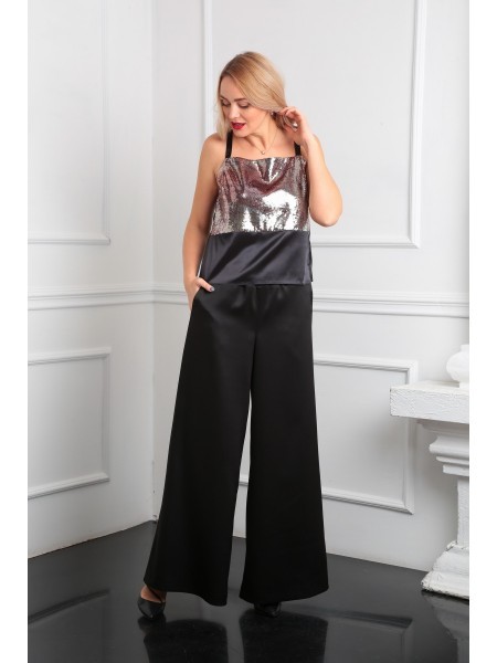 Доступность: в наличии; Производитель: AXXA; Страна производства: Беларусь; Артикул: 941634; Размеры: 48 - 52; Рост: 170 см; Материал: 100% полиэстер; Длина брюк: 106 см; Сезон: Демисезон. Это совреме... Показать описаниенная стильная модель, которая подходит как для важного мероприятия, так и для прогулок с друзьями, работы в офисе. Широкие свободные модные брюки с поясом на широкой резинке визуально стройнят и вытягивают силуэт, прекрасно сочетаются со многими офисными и нарядными вещами . Брючки - трубы оверсайз из плотной ткани с легим блеском( атлас ) прекрасно подойдут на каждый день и на праздник. Они актуальны в любое время года - летом, весной, осенью и зимой. Демисезонные брюки - это одновременно летняя, весенняя и зимняя модель. Модель подходит для девушек любого роста и телосложения - полных , худеньких . Молодежные брюки специально рассчитаны на ношение обуви с высоким каблуком . Они станут прекрасным подарком на день рождения жене или любимой девушке.