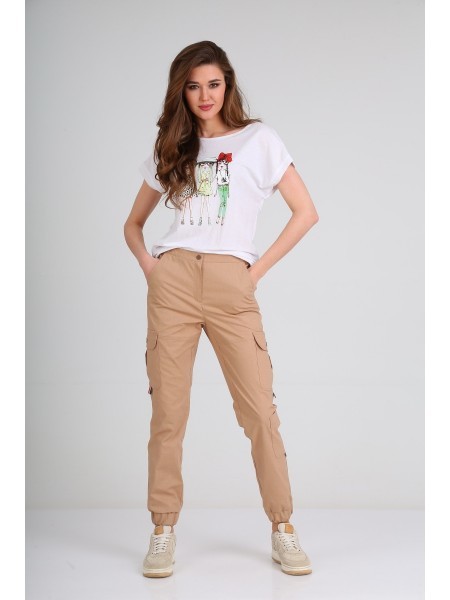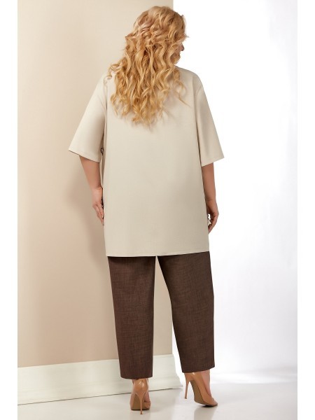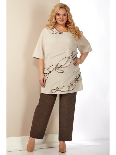 Доступность: в наличии; Производитель: AiraStyle; Страна производства: Беларусь; Артикул: 900185; Размеры: 58 - 60; Рост: 164 см; Материал: 100% полиэстер; длина изделия по спинке: 80 см.; длина брюк:... Показать описание 94 см.; Сезон: Весна, Лето. Комплект женский, состоящий из блузки и брюк,. Блузка на талии собирается на куотску, рукав летучая мышь. Брюки ткань лен вишер, цвет бежевый, по бокам на резинке и на молнии