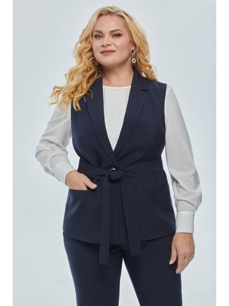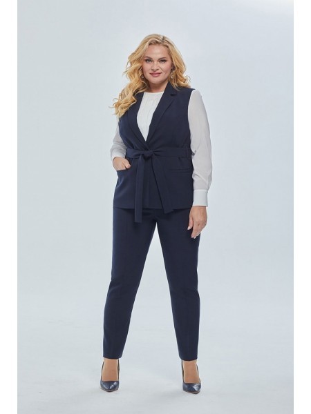 Доступность: в наличии; Производитель: AlaniCollection; Страна производства: Беларусь; Артикул: 920401; Размеры: 56 - 58; Рост: 164 см; Материал: Жилет и брюки- Фиона (Полиэстер 95%, спандекс 5%), блу... Показать описаниеза- креп (Полиэстер 70%, вискоза 25%, спандекс 5%); Сезон: Демисезон, Весна, Лето. Комплект брючный 3-ка. Жилет с отложными лацканами и воротником. Застежка на одну пуговицу. По переду рельефные швы и функциональные карманы. Жилет на подкладке. Дополняет пояс. Блуза из шифона с фигурной линией низа, с втачными рукавами. По переду с центральной встречной складкой и нагрудными вытачками. Застежка на навесную петлю-пуговицу в среднем шве спинки по горловине. Рукава с притачными манжетами, застегивающимися на петлю-пуговицу. Брюки классического кроя с притачным поясом, с застежкой-молнией и пуговицей на петле. Пояс на резинке по боковым швам. Передние части с косыми боковыми карманами. Задние части с талиевыми вытачками. Длина жилета по среднему шву спинки – р52,54,56 – 66, р58-68 см. Ширина плеча – р52-11,6, р54-11,8, р56,58-12. ОГ ? - р52-54, р54-56, р56-58, р58-60. ОТ ? - р52-53, р54-55, р56-57, р58-59. ОБ ? - р52-59, р54-61, р56-63, р58-65. Длина блузы по среднему шву спинки – р52,54,56 – 59, р58-61 см. Длина рукава во всех р-ах -59,5 см. Ширина рукава на уровне глубины проймы ? - р52-19, р54-19,7, р56-20,4, р58-21,1. Ширина плеча – р52-9,8, р54-10, р56-10,2, р58-10,4. ОГ ? - р52-57, р54-59, р56-61, р58-63. ОТ ? - р52-56, р54-58, р56-60, р58-62. ОБ ? - р52-59, р54-61, р56-63, р58-65. Длина брюк от талии по боковому шву – р52-100, р54-100,5, р56-101, р58-101,5 см. ОТ ? (max) – р52-48,5, р54-50,5, р56-52,5, р58-54,5. ОБ ? - р52-56, р54-58, р56-60, р58-62