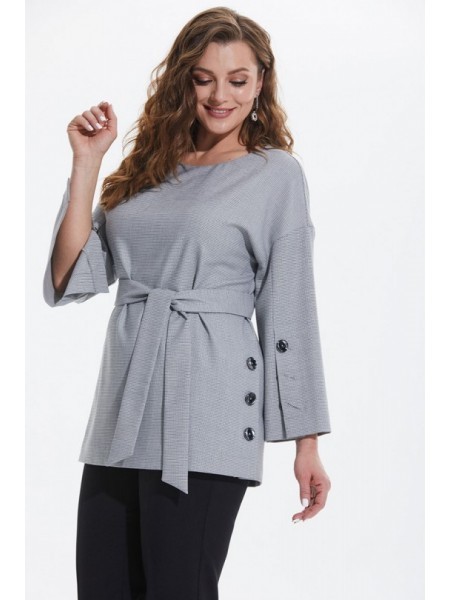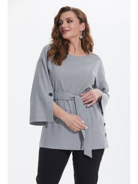 Доступность: в наличии; Производитель: AlaniCollection; Страна производства: Беларусь; Артикул: 926467; Размеры: 46; Рост: 164 см; Материал: блуза- ПЭ 65%, вискоза 32%, эластан 3%, брюки- ПЭ 95%, элас... Показать описаниетан 5%; Сезон: Демисезон. Комплект брючный. Блуза из костюмно-плательного полотна средней плотности (серая гусиная лапка). Блузон прямого силуэта со спущенной линией плеча. Застежка на навесную петлю-пуговицу в среднем шве спинки. По левому боковому шву переда и по передним швам рукава шлицы, фиксируемые на 3 пробивных петли-пуговицы. Блуза в комплекте с поясом из основной ткани. Брюки длинные со сгибом, на притачном поясе с пятью шлевками (черные). Застежка на тесьму-молнию и одну петлю и пуговицу в среднем шве. Передние части с имитацией косых боковых карманов. Задние части с талиевыми вытачками. Длина блузы по среднему шву спинки - р46,48 -71, р50-73 см. Длина рукава во всех р-ах 40,5 см. Ширина рукава на уровне глубины проймы ? - р46-20, р48-20,7, р50-21,4 см. Ширина плеча – р46-20, р48-20,5, р50-21. ОГ ? - р46-54, р48-56, р50-58. ОТ ? - р46-51, р48-53, р50-55. ОБ ? - р46-53, р48-55, р50-57. Длина брюк от талии по боковому шву - р46-101,5 р48-102, р50-102,5 см. ОТ ? - р46-39, р48-41, р50-43. ОБ ? - р46-49, р48-51, р50-53.