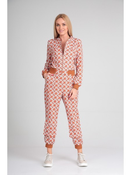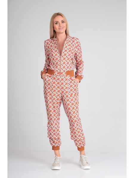 Доступность: в наличии; Производитель: AXXA; Страна производства: Беларусь; Артикул: 907346; Размеры: 44 - 48; Рост: 170 см; Материал: 100% полиэстер; Длина жакета: 46 см; Длина брюк + пояс: 98 см; Се... Показать описаниезон: Весна. Стильный женский комплект выполненный из принтового, плательно-костюмного полотна, подарит чувство удобства и комфорта своей обладательнице. Жакет прямого силуэта, укороченный, по низу собран на контрастную широкую резинку. Горловина округлая с плосколежащей отрезной стойкой. По переду изделия предусмотрены подрезы от бокового шва до горловины, в которых расположены отлетные клапаны, имитирующие вход в карман, крепящиеся на стильные пуговицы. Застежка центральная выполнена на декоративную молнию. Спинка со средним швом и кокеткой. Рукав втачной, полной длины, по низу собран на притачную манжету-резинку. Брюки прямые с высокой посадкой в стиле карго выполнены на притачном поясе - резинке. От пояса до бокового шва имеются подрезы, в которых расположены удобные карманы. Чуть ниже колена имеются накладные карманы «портфели» с отлетным клапаном. Низ брюк собран на притачную контрастную широкую резинку в виде манжеты.