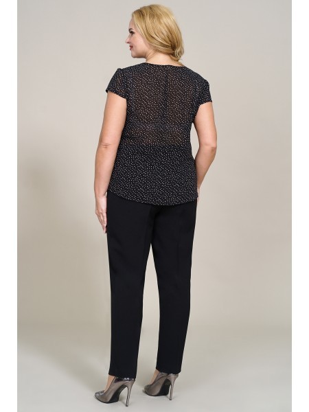 Доступность: в наличии; Производитель: AlaniCollection; Страна производства: Беларусь; Артикул: 931507; Размеры: 46 - 58; Рост: 164 см; Материал: блуза- 60%, вискоза 36%, эластан 4%, юбка-брюки- полиэ... Показать описаниестер 95%, спандекс 5%; Сезон: Демисезон. Блуза полуприлегающего силуэта из жаккарда (полотно средней плотности, эластичное). Перед с нагрудными вытачками и клапанами, которые декорированы пришивной пуговицей. Застежка в среднем шве спинки на навесную петлю-пуговицу. По боковым швам небольшие разрезы. Рукава втачные, одношовные с притачными манжетами, застегивающимися на одну петлю-пуговицу. Юбка-брюки широкие, свободные на притачном поясе с застежка на потайную тесьму-молнию в левом боковом шве. Передние части брюк со встречными мягкими складками и с косыми боковыми карманами. Задние части с талиевыми вытачками. Длина блузы по среднему шву спинки - р46-51, р48-52, р50-53. Длина рукава во всех р-ах - 51,5 см. Ширина рукава на уровне глубины проймы ? - р46-18, р48-18,7, р50-19,4. Ширина плеча во всех р-ах - 8 см. ОГ ? - р46-49, р48-51, р50-53. ОТ ? - р46-48, р48-50, р50-52. ОБ ? - р46-51, р48-53, р50-55. Длина брюк от талии по боковому шву во всех р-ах - 88 см. ОТ ? - р46-40, р48-42, р50-44. ОБ ? - р46-51, р48-53, р50-55.