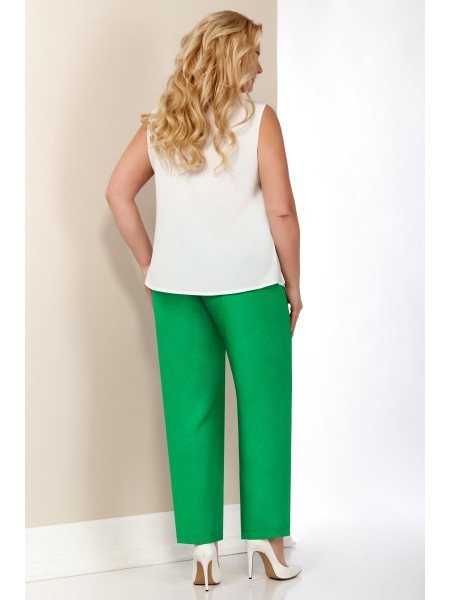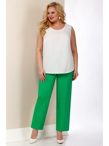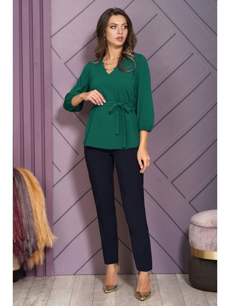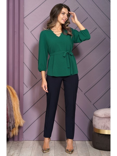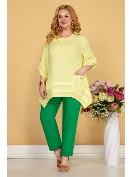 Доступность: в наличии; Производитель: AiraStyle; Страна производства: Беларусь; Артикул: 951308; Размеры: 62 - 66; Рост: 164 см; Материал: Полиэстер 70%, вискоза 25%, спандекс 5%; Длина по центру спи... Показать описаниенки: 83 см.; Длина брюк: 105 см.; Сезон: Весна, Лето. Комплект женский, состоящий из блузки и брюк. Блузка из приятной на ощупь ткани с защипами и нашитыми листиками, без плечевых накладок. Рукав спущенный, по переду накладные клапаны карманов обманка. Брюки из эластичной ткани, чуть заужены к низу на притачном поясе с резинкой по кругу.