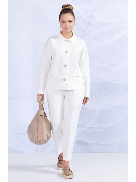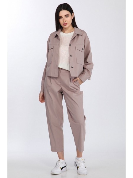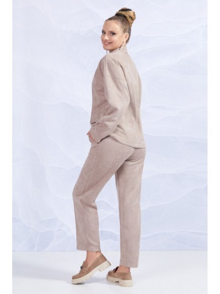 Доступность: в наличии; Производитель: AVE RARA; Страна производства: Беларусь; Артикул: 927633; Размеры: 44 - 54; Рост: 170 см; Материал: ПЭ 96%, спандекс 4%. Костюм из экозамши на трикотажной основе... Показать описание, состоящий из жакета и брюк. Жакет свободного силуэта с застежкой на пуговицы и рубашечным воротником. На переде декоративные клапаны. Брюки с карманами и трикотажным поясом на резинке. На передних половинках застрочены канты.