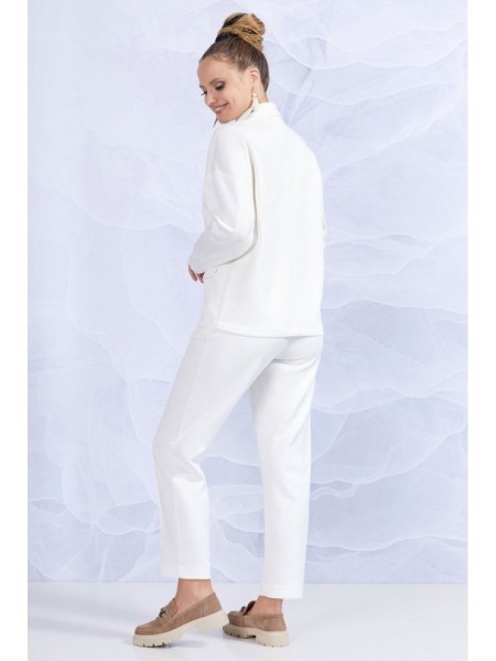 Доступность: в наличии; Производитель: ALLURE; Страна производства: Беларусь; Артикул: 936080; Размеры: 42 - 48; Рост: 170 см; Материал: Хлопок 65%, полиэстер 35%; Длина джемпера по спинке: 63 см.; Дл... Показать описаниеина рукава: 48 см.; Длина брюк без учета пояса: 100 см.; Рост: 170 см.; Сезон: Демисезон, Весна. Комплект состоит из джемпера и брюк. Джемпер прямого силуэта со спущенной линией плеча. Рукав одношовный, втачной. Горловина, низ рукава и низ изделия обработаны планками из отделочной ткани в тон основной. По переду вышивка. Брюки расширенные к низу с притачным прямым поясом на резинке. Брюки с боковыми карманами с наклонным входом. По передним частям брюк застрочены стрелки.