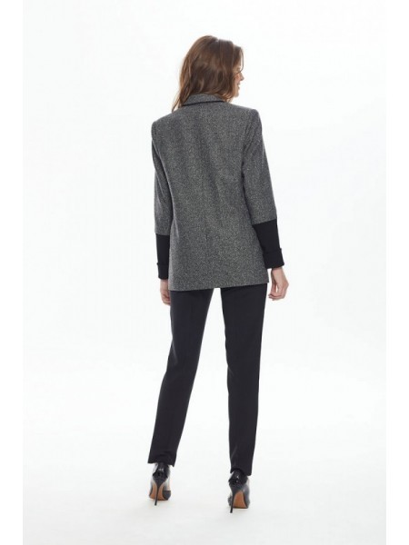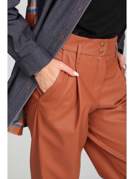 Доступность: в наличии; Производитель: AlaniCollection; Страна производства: Беларусь; Артикул: 895029; Размеры: 44; Рост: 164 см; Материал: жакет- полиэстер 65%,вискоза 32%, эластан 3%+экокожа- экоко... Показать описаниежа полиэстер 16%, вискоза 84%, покрытие полиэстер 100%, брюки- экокожа полиэстер 16%, вискоза 84%, покрытие полиэстер 100%; Сезон: Демисезон. Жакет полуприлегающего силуэта с застежкой, смещенной влево, на потайную тесьму-молнию. Перед с рельефными швами, в рельефных швах карманы. Воротник стояче-отложной. Рукава двухшовные, втачные. Жакет на подкладке и с плечевыми накладками. Длина жакета по среднему шву спинки во всех р-ах -56,5. Длина рукава во всех р-ах -62,5. Ширина рукава на уровне глубины проймы ? - р44-17,8, р46-18,5, р48-19,2. Ширина плеча – р44-11,7, р46-11,8, р48-11,9. ОГ ? - р44-48,5, р46-50,5, р48-52,5. ОТ ? - р44-44,5, р46-46,5, р48-48,5. ОБ ? - р44-51,5, р46-53,5, р48-55,5. Брюки из экокожи типа «Бананы» - свободные в бедрах и чуть зауженные к низу. Брюки с притачным поясом, который полностью на резинке. Передние и задние части по середине с рельефными швами. Длина брюк от талии по боковому шву – р44-95, р46-95,5, р48-96. ОТ ? ( max) – р44-47, р46-49, р48-51. ОБ ? - р44-51, р46-53, р48-55