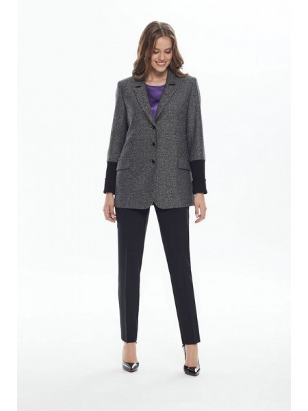 Доступность: в наличии; Производитель: AlaniCollection; Страна производства: Беларусь; Артикул: 931514; Размеры: 52 - 56; Рост: 164 см; Материал: жакет- полиэстер 60%, вискоза 37%, эластан 3%, брюки- ... Показать описаниеполиэстер 95%, эластан 5%; Сезон: Демисезон. Жакет прямого силуэта с нагрудными вытачками, с двубортной застежкой на петли-пуговицы, с прорезными карманами с листочками. Рукава втачные, двухшовные. Жакет на подкладке и с плечевыми накладками. Брюки классического кроя с притачным поясом, с застежкой-молнией и пуговицей на петле. Пояс на резинке по боковым швам. Передние части с имитацией косых боковых карманов. Задние части с талиевыми вытачками. Длина жакета по среднему шву спинки во всех р-ах - 70 см. Длина рукава во всех р-ах - 62 см. Ширина рукава на уровне глубины проймы ? - р52-21, р54-21,7, р56-22,4. Ширина плеча – р52-11,8, р54-12,2, р56-12,6. Длина входа в карман во всех р-ах -15. ОГ ? - р52-59, р54-61, р56-63. ОТ ? - р52-59, р54-61, р56-63. ОБ ? - р52-61, р54-63, р56-65. Длина брюк от талии по боковому шву – р52-99, р54-100, р56-101. ОТ ? (с раст резинкой) – р52-49, р54-51, р56-53. ОБ ? - р52-57,5, р54-59,5, р56-61,5. Длина шага брюк во всех р-ах – 74 см. Ширина брюк внизу 1/2 – р52-18,3, р54-19, р56-19,7. Ширина бедра1/2 – р52-34, р54-35,5, р56-37.