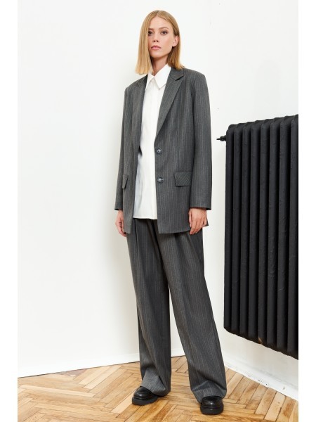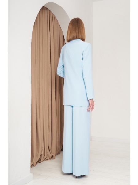 Доступность: в наличии; Производитель: AlaniCollection; Страна производства: Беларусь; Артикул: 898238; Размеры: 52 - 54; Рост: 164 см; Материал: жакет- полиэстер 95%, эластан 5%, юбка-брюки- полиэсте... Показать описаниер 95%, элатсан 5%; Сезон: Демисезон. Жакет со спущенной линией плеча, с центральной застежкой на петли-пуговицы. Спинка с притачной кокеткой. Рукава втачные, одношовные с притачными манжетами, застегивающимися на петлю-пуговицу. Перед жакета и спинка на подкладке. Рукава без подкладки. Длина жакета по среднему шву во всех р-ах -61. Длина рукава – р52-48, р54-47,5, р56-47, р58-46,5. Ширина рукава на уровне глубины проймы ? - р52-22,2, р54-22,9, р56-23,6, р58-24,3. Ширина плеча – р52-25, р54-25,5, р56-26, р58-26,5. ОГ ? - р52-59, р54-61, р56-63, р58-65. ОТ ? - р52-58,5, р54-60,5, р56-62,5, р58-64,5. ОБ ? (по линии низа) – р52-58,5, р54-60,5, р56-62,5, р58-64,5. Юбка-брюки широкие, свободные на притачном поясе с резинкой в боковых швах. Застежка на потайную тесьму-молнию в левом боковом шве. Передние части брюк со встречными мягкими складками и с косыми боковыми карманами. Задние части с талиевыми вытачками. Длина брюк от талии по боковому шву – р52-88, р54-88,5, р56-89, р58-89,5. ОТ ?– р52-48, р54-50, р56-52, р58-54. ОБ ? - р52-57, р54-59, р56-61, р58-63