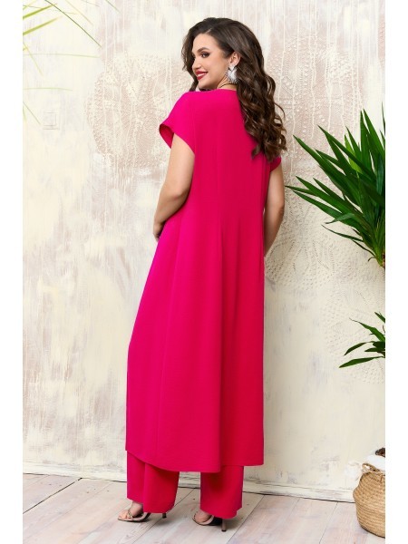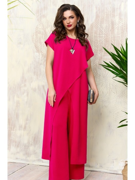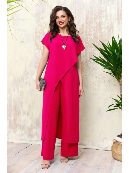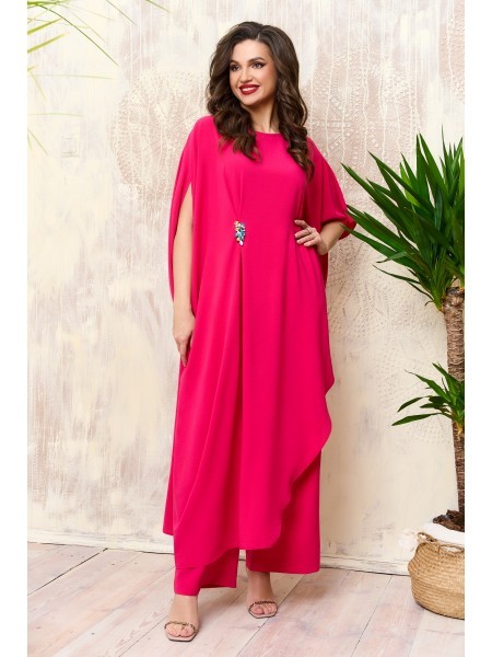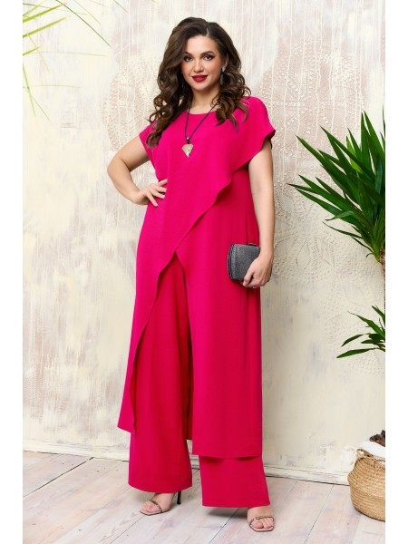 Доступность: в наличии; Производитель: AGATTI; Страна производства: Беларусь; Артикул: 957373; Размеры: 50 - 60; Рост: 164 см; Материал: Вискоза 90%, эластан 10%; Сезон: Демисезон, Осень, Весна, Лето.... Показать описание Стильный и практичный комплект, состоит из длинной туники и брюк. Эффектная туника прямого силуэта, выполнена из натуральной струящейся вискозы, с глубокими разрезами по переду на запах, великолепно подчёркивает все формы и линии, скрывая небольшие несовершенства фигуры и делая пропорции максимально гармоничными и естественными. Спинка туники цельная, с таллиевыми выточками на спинке. Горловина округлая, обработана обтачкой, линия плеча приспущена, рукав короткий, цельнокроеный. Модель изящно ложится по фигуре, визуально удлиняя силуэт. Стильные широкие брюки «палаццо» с классической посадкой на талию. Пояс притачной на эластичной тесьме-резинке. Приятная натуральная ткань, отличная посадка по фигуре позволит выглядеть стильно и модно. Модель отлично подойдет для торжественного мероприятия и ежедневной носки. В комплект входит стильный кулон-украшение.