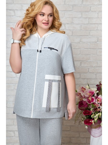 Доступность: в наличии; Производитель: AiraStyle; Страна производства: Беларусь; Артикул: 945695; Размеры: 54 - 58; Рост: 164 см; Материал: 70% вискоза, 25% полиэстер, 5% спандекс; Длина джемпера по с... Показать описаниепинке: 73 см.; Длина брюк: 99 см.; Сезон: Демисезон. Комплект женский 2-х предметный, состоящий из толстовки и брюк. Ткань трикотаж двухнитка, цвет светло серый и молока. Толстовка прямого силуэта со спущеной линий рукава. По пеоеду и спинке наложена сетка, застегивается толстовка на молнию. По переду функциональный карман. Брюки - пояс с резинкой, и манжете резинке по низу брюк.