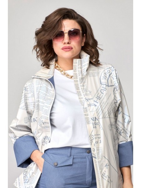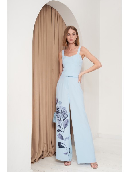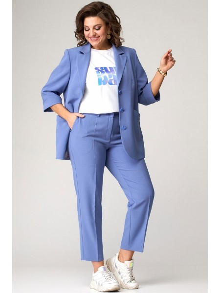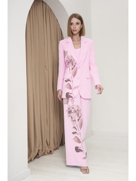 Доступность: в наличии; Производитель: ALLURE; Страна производства: Беларусь; Артикул: 956208; Размеры: 44 - 50; Рост: 170 см; Материал: Полиэстер 74%, вискоза 23%, спандекс 3%; Длина жакета: 72 см.; ... Показать описаниеДлина рукава жакета: 61 см.; Длина топа по спинке: 28 см.; Длина брюк по боковому шву без учета пояса: 108 см.; Сезон: Весна, Лето. Костюм состоит из жакета, топа и брюк. Жакет полуприлегающего силуэта с однобортной застежкой на две петли и пуговицы и воротником пиджачного типа. Борт закругленый. Перед с талиевой вытачкой и настрочными клапанами. Спинка с рельефом и средним швом. Рукав втачной двухшовный. Жакет на подкладке. Топ прилегающего силуэта. Перед отрезной по линии лифа, с рельефами. Спинка со средним швом и рельефами. В боковом шве застежка на потайную молнию. Топ на подкладке. Брюки расширеные книзу с притачным поясом. По передней и задней частям брюк вытачки. По правой части брюк и правому переду жакета выполнена декоративная печать. Рост 170 см.