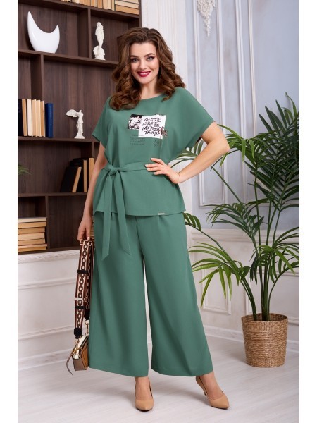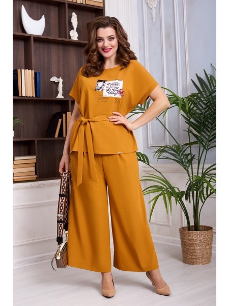 Доступность: в наличии; Производитель: AGATTI; Страна производства: Беларусь; Артикул: 954823; Размеры: 44 - 52; Рост: 164 см; Материал: Вискоза 90%, эластан 10%.; Длина блузки: 62 см.; Длина рукава о... Показать описаниет горловины: 28 см.; Длина кюлот: 93 см.; Сезон: Демисезон, Осень, Весна, Лето. Стильный и практичный комплект, состоит из блузки и кюлот. Блузка прямого силуэта, выполнена из натуральной вискозы. Блузка с округлым вырезом горловины, декорирована дизайнерской печатью. Рукав цельнокроеный, приспущенный. Кюлоты выполнены из натуральной вискозы, на поясе, по переду с застежкой на молнию и пуговицу, в боковых швах функциональные карманы. В комплекте к кюлотам идет пояс из основной ткани. Модель удобная и практичная, отлично подойдет для ежедневной носки в жаркое время.