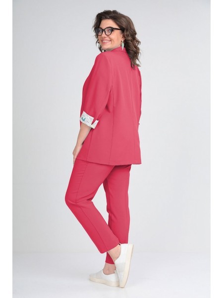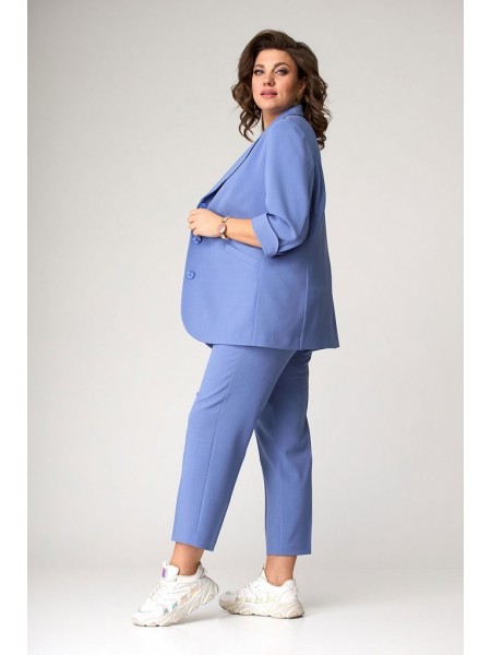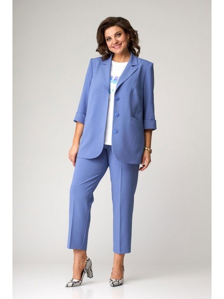 Доступность: в наличии; Производитель: AlaniCollection; Страна производства: Беларусь; Артикул: 931500; Размеры: 46 - 50; Рост: 164 см; Материал: блуза- ПЭ 65%, вискоза 32%, эластан 3%, брюки- ПЭ 95%,... Показать описание эластан 5%; Сезон: Демисезон. Комплект состоит из жакета, блузы и брюк. Жакет прямого силуэта с центральной застежкой на три петли-пуговицы. Перед с прорезными карманами с клапаном. Спинка со средним швом и рельефными швами. Рукава втачные, двухшовные с притачными манжетами из довяза. Жакет на подкладке и с плечевыми накладками. Блуза полуприлегающего силуэта с фигурной линией низа. Перед с нагрудными вытачками. Застежка по ценру горловины спинки на навесную петлю и пуговицу. Рукава – крылышко со сборкой по окату. Брюки длинные со сгибом, на притачном поясе с пятью шлевками. Застежка на тесьму-молнию и одну петлю и пуговицу в среднем шве. Передние части с имитацией косых боковых карманов. Задние части с талиевыми вытачками. Ремень в комплект не входит. Длина жакета по среднему шву спинки во всех р-ах - 73,5 см. Длина рукава во всех р-ах - 61 см (с отложными манжетами во всех р-ах - 69 см). Ширина рукава на уровне глубины проймы ? - р46-18,5, р48-19,2, р50-20. Ширина плеча во всех р-ах - 12,5 см. ОГ ? - р46-50, р48-52, р50-54. ОТ ? - р46-51, р48-53, р50-55. ОБ ? - р46-54, р48-56, р50-58. Длина блузы по среднему шву спинки – р46,48 – 58, р50-60. Длина рукава – р46,48 -12, р50,52-13. Ширина плеча во всех р-ах – 9 см. ОГ ? - р46-48, р48-50, р50-52. ОТ ? - р46-48, р48-50, р50-52. ОБ ? - р46-52, р48-54, р50-56. Длина брюк от талии по боковому шву - р46-102, р48-102,5, р50-103. Ширина брюк по линии низа ? - р46-16,8, р48-17,5, р50-18,2. Ширина брюк вверху ? - р46-29,2, р48-30,6, р50-32. ОТ ? – р46-39,5, р48-41,5, р50-43,5. ОБ ? – р46 -51, р48-53, р50-55.