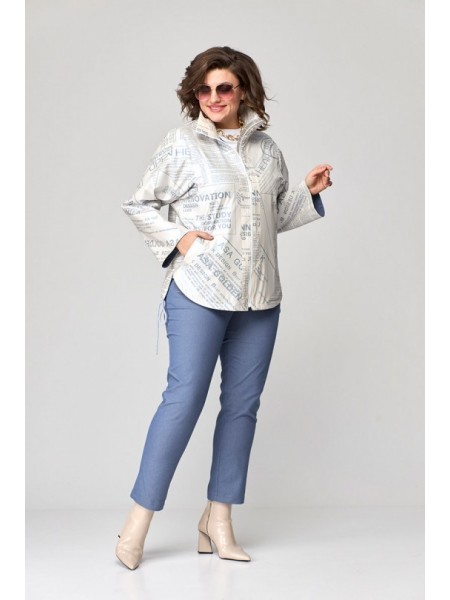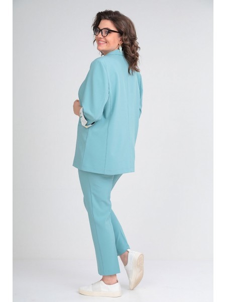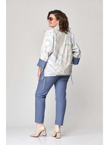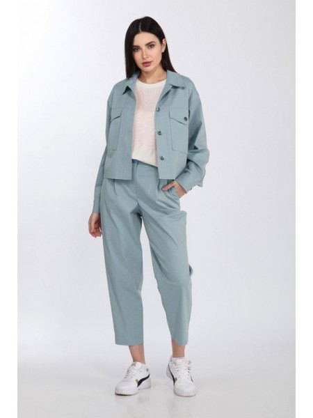 Доступность: в наличии; Производитель: ALEZA; Страна производства: Беларусь; Артикул: 956303; Размеры: 50 - 54; Рост: 164 см; Материал: хлопок 72%, ПЭ 26%, эластан 2%; Сезон: Демисезон. Комплект женск... Показать описаниеий, состоящий из жакета и брюк. Жакет с застежкой доверху на петли и пуговицы и стояче- отложным воротником. Перед с отрезными кокетками и накладными карманами с клапанами, спинка с отрезной кокеткой, наклонными рельефами и декоративной нашивкой по низу спинки, рукава рубашечного покроя с притачными манжетами. Жакет выполнен из двух цветов. Брюки на притачном поясе с резинками у боковых швов, застежкой спереди на молнию и пуговицу, карманами у боковых швов и манжетами по низу. Длина жакета по середине спинки 53 см. Ширина на уровне глубины пройм 50р - 58см, 52р - 60см, 54р- 62 см. Длина брюк по боковому шву 99 см. Длина брюк по шаговому шву 69 см. Ширина брюк по талии 44см (в растянутом виде 48 см). Полуобхват бедер в р.50 - 51 см, р.50 - 53 см, р.54 - 55 см. Полуобхват брючины в р.50 - 31 см, р.50 - 32 см, р.54 - 33 см.