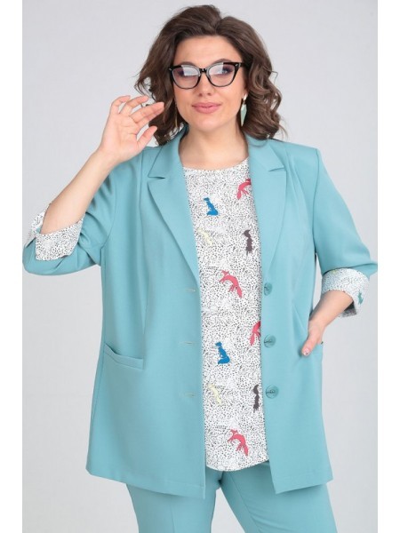 Доступность: в наличии; Производитель: ALEZA; Страна производства: Беларусь; Артикул: 956306; Размеры: 50 - 60; Рост: 164 см; Материал: ПЭ 71%, вискоза 23%, спандекс 6%; Сезон: Демисезон. Костюм женск... Показать описаниеий 3-предметный, состоящий из жакета, топа и брюк. Жакет прямого силуэта без подкладки с центральной застежкой на 3 пуговицы и воротником пиджачного типа. Перед с вертикальными рельефами и прорезными карманами с листочками, спинка со средним швом и отрезными бочками. Рукава втачные двухшовные с притачными манжетами по низу. Брюки прямые зауженные книзу с заутюженными стрелками на притачном поясе с резинками в области боковых швов и застежкой спереди на молнию и пуговицу. Топ из трикотажного полотна с декоративной печатью спереди.