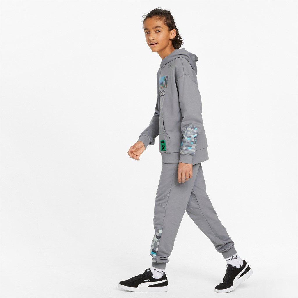 Больше картинок (информации) и таблица размеров на странице. Когда наступает время игры, мы понимаем, что комфорт имеет решающее значение. Вот почему бренд PUMA объединился с Minecraft: чтобы создать идеальные для серьезных игр детские штаны PUMA x MINECRAFT Youth Sweatpants. Модель отличают дышащий» хлопковый материал, шнурок на поясе для регулировки, стильный силуэт с манжетами», а также пиксельный принт дань уважения одной из самых культовых компьютерных игр. Стандартная посадка. Надежные боковые карманы. Отделка низа штанин в рубчик. Эластичный пояс с внешним шнурком для оптимального комфорта. Графика (прорезиненный принт) на левой щиколотке. Силиконовый значок PUMA x MINECRAFT слева. Материал: 100% хлопок