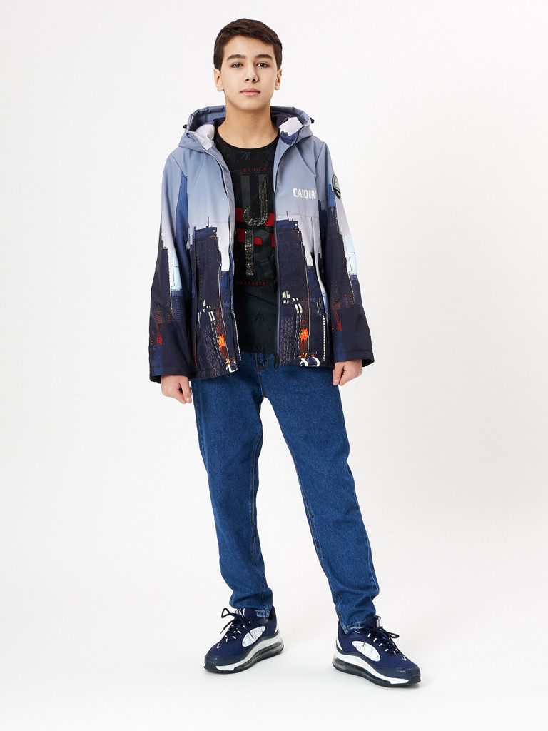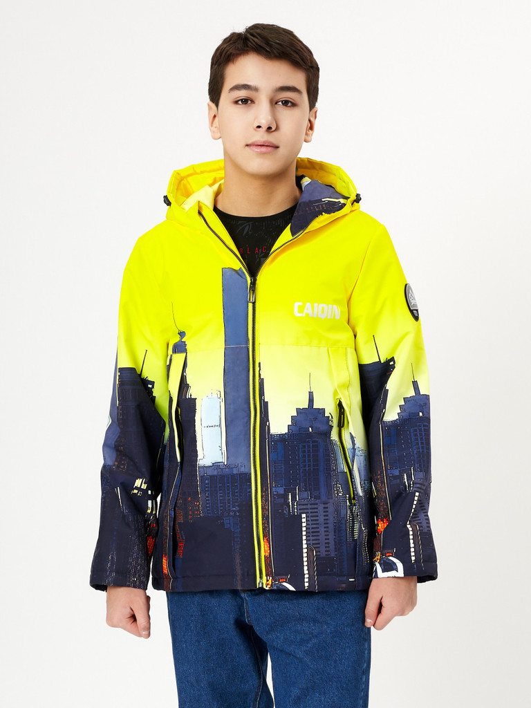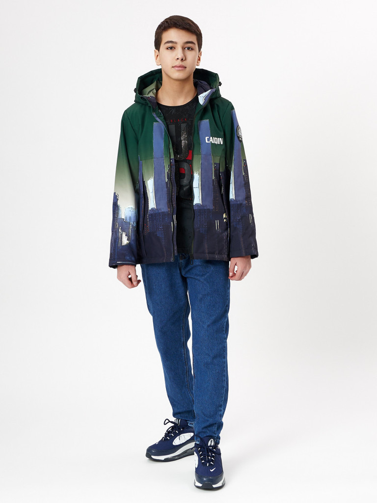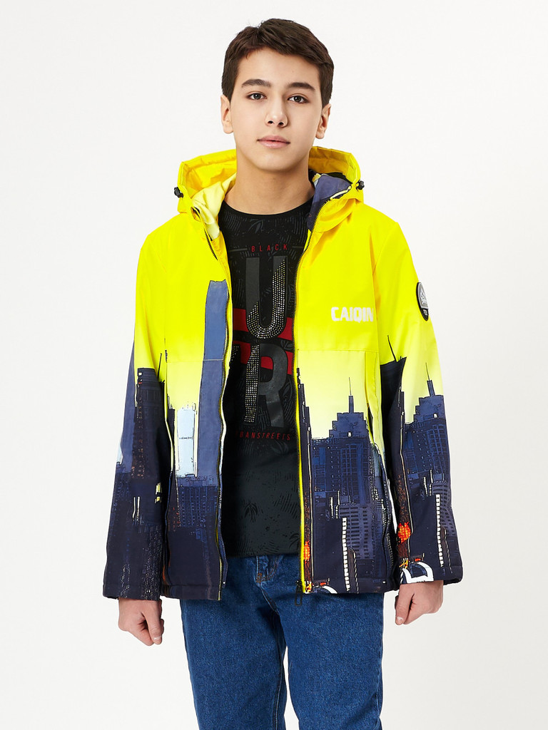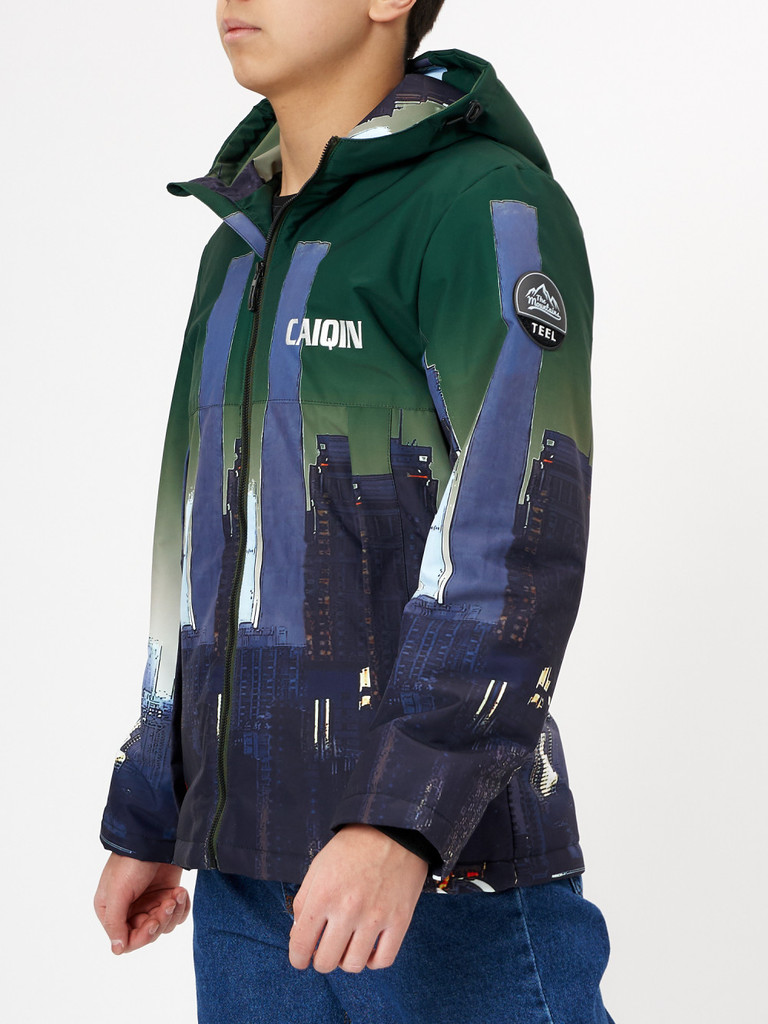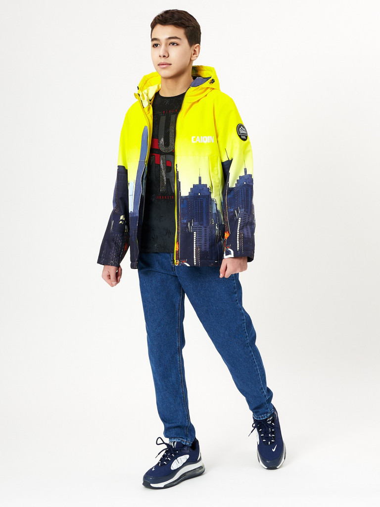 Больше картинок (информации) и таблица размеров на странице. Хотите демисезонную подростковую куртку? Куртка для мальчика с принтом небоскребов идеально подойдет для вашего ребенка. Внешне куртка очень красива и напоминает расцветку камуфляж, представлена в следующих тонах красно-черный, зелено-черный, желто-черный, сине-черный. На внешней стороне куртки по бокам имеется клапан от низа куртки до груди. Под клапаном в набедренной части, есть прорезные карманы на молнии. На левой стороне груди имеется светоотражающую надпись CAIQIN. Центральная молния в стиле трактор. Рукав у данного изделия прямой. Внутри рукава имеется утяжка из плотного прорезиненного трикотажа. На левом рукаве имеется шеврон на липучке, который можно заменять на свой индивидуальный шеврон. Капюшон не съемный, две боковые утяжки на резинке с фиксатором. Есть внутренний карман с левой стороны, боковые утяжки по низу изделия на резинке с фиксатором. Куртка средней длины и доходит до середины ягодиц. Куртка идеально подойдет для прогулок по городу и на природе, во время дождя курт
