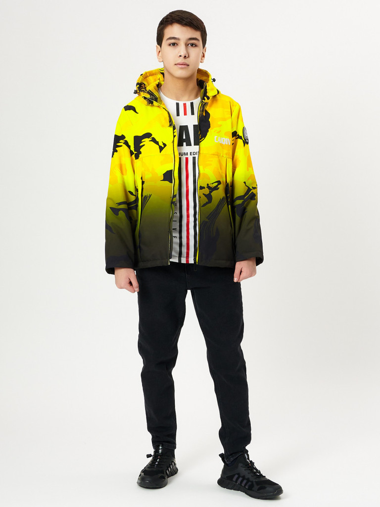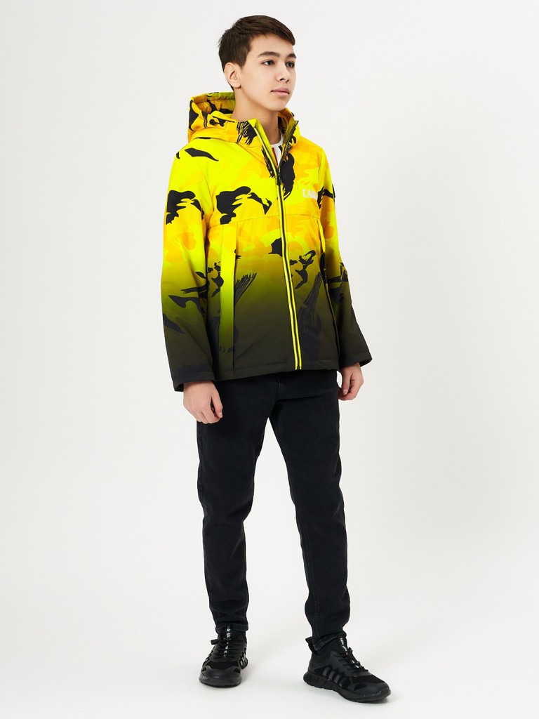 Больше картинок (информации) и таблица размеров на странице. Хотите демисезонную подростковую куртку? Детская подростковая куртка для маль. Куртка имеет: яркий, выразительный, печатный принт; прорезные боковые и нагрудный карманы на молнии; внутренний кармашек; центральную молнию трактор; ветрозащитную планку на кнопках; несъемный капюшон со шнурком. Прямые рукава имеют скрытые трикотажные манжеты. На левом плече расположен фирменный шеврон. Внутри подкладка из полиэстера, утеплитель синтепон. Данная модель идеально подойдет для похода в школу, прогулки во дворе, в парке и на природе. Свободный крой куртки не будет сковывать движение вашего ребенка. Материал: Плащевка, Полиэстер, Нейлон, Хлопок, Текстиль, Тефлон, Ткань, Экологичные материалы Состав: 100% полиэстер Подкладка: 100% хлопок Подкладка: 100% полиэстер Тип кармана: прорезной Рассчитан: от + 5 до + 20 Вид застежки: молния Покрой: прямой Особенность ткани: плотная Воротник: копюшон. Внутренние карманы: есть Особенность модели: фиксаторы Цвета: желтый, красный, зеленый