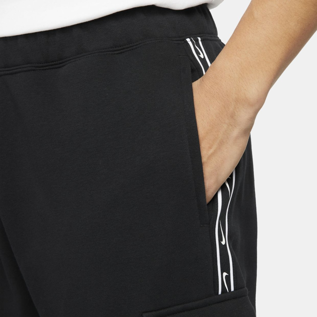 Больше картинок (информации) и таблица размеров на странице. Спортивные брюки Nike Sportswear Repeat представляют собой брюки карго из мягкой флисовой ткани. Брюки обеспечивают повседневный комфорт в стильном дизайне. Классический крой и эластичный пояс обеспечивают оптимальный комфорт в течение дня. Подробности: - Эластичный пояс с кулиской- Грузовые карманы- Ребристые манжеты- Дышащие контрастные боковые полосыПолоса с принтом по бокам с повторяющимся логотипом Nike Swoosh. Материал: 80% хлопок, 20% полиэстер