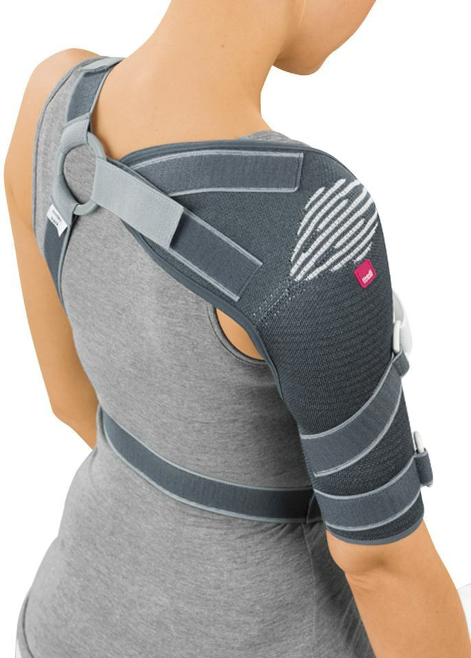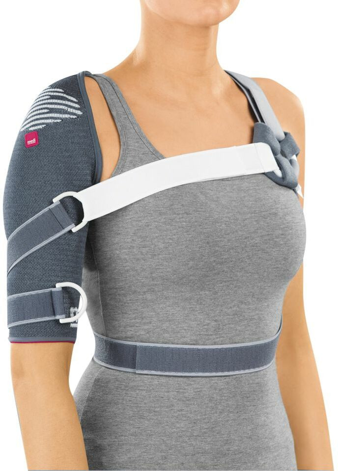 Больше картинок (информации) и таблица размеров на странице. С помощью бандажа Omomed можно эффективного ограничить подвижность плечевого сустава в широком диапазоне. Необходимость в таком ограничении может возникнуть после некоторых травм или операций, а также при консервативном лечении ряда заболеваний плечевого сустава. Ограничение амплитуды осуществляется с помощью регулировки длины плечевого ремня и изменения места его крепления на манжете бандажа. Таким образом исключаются потенциально опасные (травмирующие) движения на данном этапе лечения. При прочих равных условиях защита структур плечевого сустава от избыточной подвижности создает условия для быстрого выздоровления и хорошего функционального результата лечения. Кроме того, компрессионный эффект улучшает кровообращение и уменьшает отек. Показания к применению: Состояние после оперативного лечения перелома головки плечевой кости и лопатки; Повреждение акромиально-ключичного сочленения и суставной поверхности лопатки; Консервативное лечение вывиха плеча; Обострение плечелопаточного периар