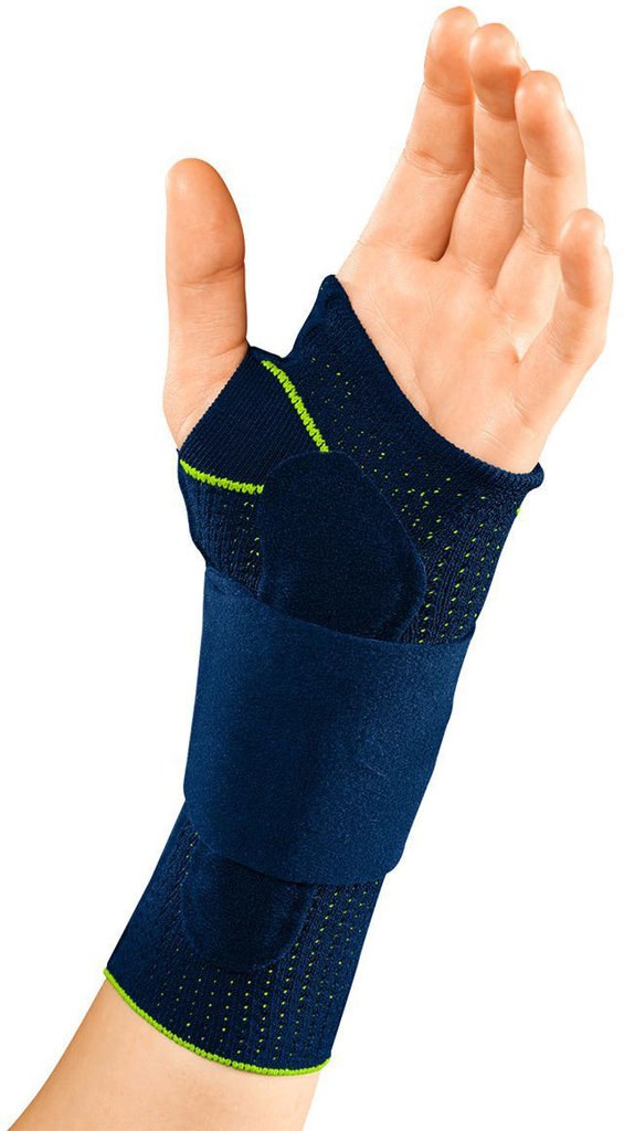 Больше картинок (информации) и таблица размеров на странице. Все потребности спортсменов учтены в лучезапястном бандаже Manumed active E+motion. Это идеальное решение для лечения травм, артроза, нестабильностей и других заболеваний запястья, которые могут возникнуть при длительных спортивных нагрузках. Он состоит из вязаной манжеты, стабилизирующей шины и широкого фиксирующего ремня. Шина располагается на ладонной поверхности и поддерживает даже массивную кисть. Компрессионная ткань улучшает кровообращение, что способствует быстрому разрешению отека (гематомы) и ускоренной регенерации. Показания к применению: Травмы лучезапястного сустава;Артроз лучезапястного сустава;Периартрит (посттравматический, ревматической природы или после операции);Нестабильность лучезапястного сустава;Теносиновит. Специальный вырез в фиксирующем ремне исключает давление на костный выступ и обеспечивает комфорт даже при длительном использовании. Эластичный материал с включением шерсти мериноса бандажа поддерживает идеальный теплообмен, активно испаряя влагу: летом в бан