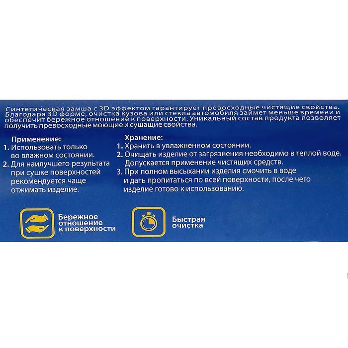 Эффективно очищайте стеклянные, пластиковые, лакокрасочные поверхности и удаляйте влагу, грязь и пыль с помощью синтетической замши Goodyear. Набор: нет. Цвет: синий. Размер, см: 43 х 64. Материал: за... Показать описаниемша. Вид: замша протирочная. Состав: pvc.