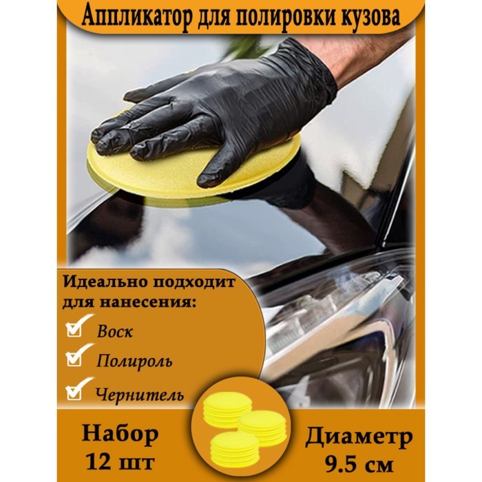 Аппликатор для полировки кузова, d-9.5 см, набор 12 штВопросы по товару