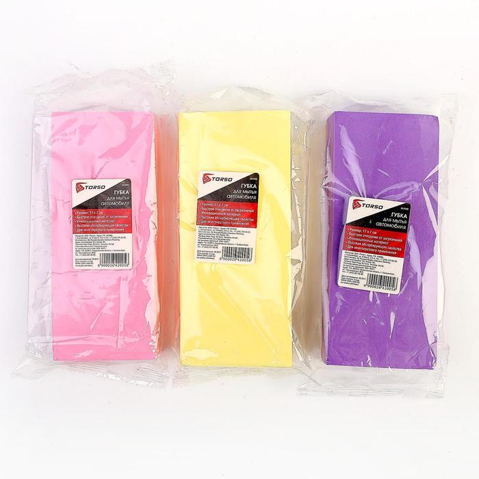Губка для мытья авто TORSO, 17?7 см, влаговпитывающая, миксВопросы по товару