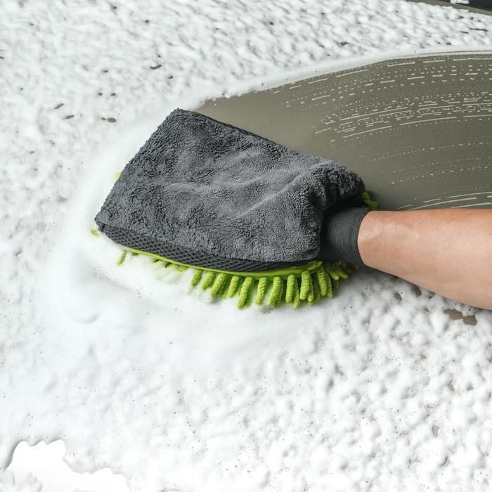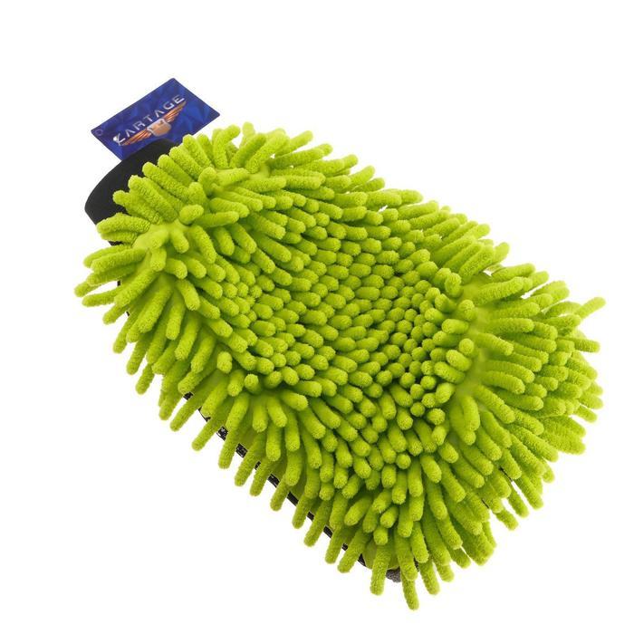 Варежка для мытья авто CARTAGE, 25?19 см, двухсторонняя, зелено-сераяВопросы по товару