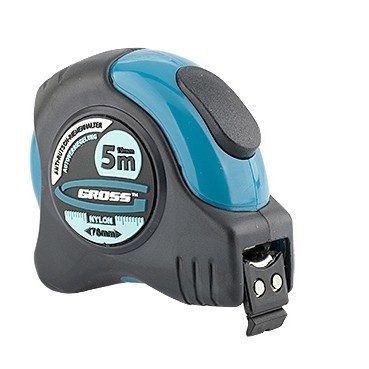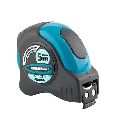 Рулетка Gross «Schlagfest» 31112 с магнитным обрезиненным зацепом, двухсторонней шкалой и функцией автоматической фиксации полотна, 5 м х 19 мм, позволяет определять размеры материалов, вычислять площ... Показать описаниеадь помещения и проводить другие измерительные работы Карманная рулетка — незаменимый инструмент в хозяйстве и на строительной площадке. Магнитный обрезиненный зацеп обеспечивает возможность захвата скользких и металлических поверхностей со сложной формой.Преимущества Удобство работы — измерительная шкала нанесена на ленту с обеих сторон. Автоматический фиксатор и дополнительная кнопка паузы — ленту легко удерживать на нужной длине. Ширина полотна 19 мм — замеры можно производить в труднодоступных местах. Высокая точность замеров от нуля — рулетка оснащена подвижным зацепом. Двухкомпонентный корпус — рулетка из ударопрочного ABS-пластика с обрезиненным покрытием выдерживает падения с небольшой высоты и не проскальзывает в руках. Защита полотна от истирания — на стальной ленте имеется нейлоновое покрытие.