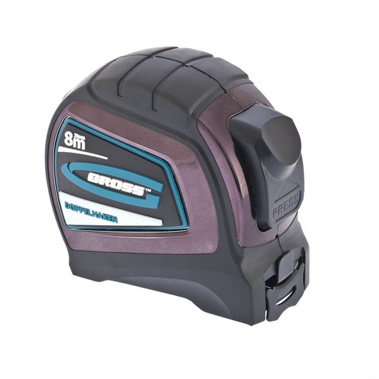 Рулетка Gross «Schlagfest» 31114 с магнитным обрезиненным зацепом, двухсторонней шкалой и функцией автоматической фиксации полотна, 8 м х 25 мм, позволяет определять размеры материалов, вычислять площ... Показать описаниеадь помещения и проводить другие измерительные работы Карманная рулетка — незаменимый инструмент в хозяйстве и на строительной площадке. Магнитный обрезиненный зацеп обеспечивает возможность захвата скользких и металлических поверхностей со сложной формой.ПреимуществаУдобство работы — измерительная шкала нанесена на ленту с обеих сторон.Автоматический фиксатор и дополнительная кнопка паузы — ленту легко удерживать на нужной длине.Высокая точность замеров от нуля — рулетка оснащена подвижным зацепом.Двухкомпонентный корпус — рулетка из ударопрочного ABS-пластика с обрезиненным покрытием выдерживает падения с небольшой высоты и не проскальзывает в руках.Защита полотна от истирания — на стальной ленте имеется нейлоновое покрытие.