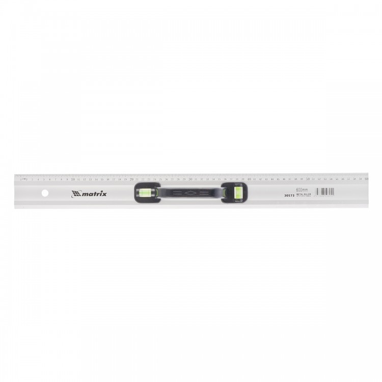 Металлическая линейка-уровень Matrix 30573, длина шкалы 600 мм, с пластмассовой ручкой и 2 глазками, предназначена для разметки материалов и измерения различных предметов. Инструмент снабжен 2 жидкост... Показать описаниеными глазками, которые позволяют определить степень отклонения поверхностей от вертикали и горизонтали. Линейка используется во время строительных и ремонтных работ, а также будет полезна при установке мебели и монтаже навесного оборудования.ПреимуществаЛинейка-уровень изготовлена из жесткого алюминиевого профиля, усиленного ребрами жесткости, поэтому устойчива к деформациям и служит долго.Четкая шкала будет хорошо видна даже при длительной эксплуатации.Удобная пластмассовая рукоятка обеспечивает комфорт во время работы.