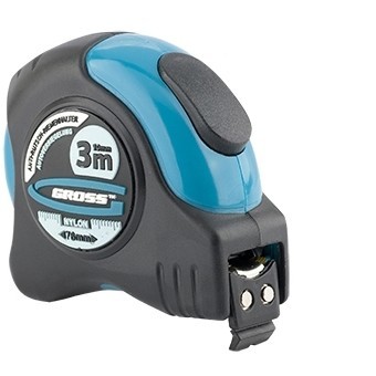 Рулетка Gross «Schlagfest» 31111 с магнитным обрезиненным зацепом, двухсторонней шкалой и функцией автоматической фиксации полотна, 3 м х 19 мм, позволяет определять размеры материалов, вычислять площ... Показать описаниеадь помещения и проводить другие измерительные работы Карманная рулетка — незаменимый инструмент в хозяйстве и на строительной площадке. Магнитный обрезиненный зацеп обеспечивает возможность захвата скользких и металлических поверхностей со сложной формой.Преимущества Удобство работы — измерительная шкала нанесена на ленту с обеих сторон. Автоматический фиксатор и дополнительная кнопка паузы — ленту легко удерживать на нужной длине. Ширина полотна 19 мм — замеры можно производить в труднодоступных местах. Высокая точность замеров от нуля — рулетка оснащена подвижным зацепом. Двухкомпонентный корпус — рулетка из ударопрочного ABS-пластика с обрезиненным покрытием выдерживает падения с небольшой высоты и не проскальзывает в руках. Защита полотна от истирания — на стальной ленте имеется нейлоновое покрытие.
