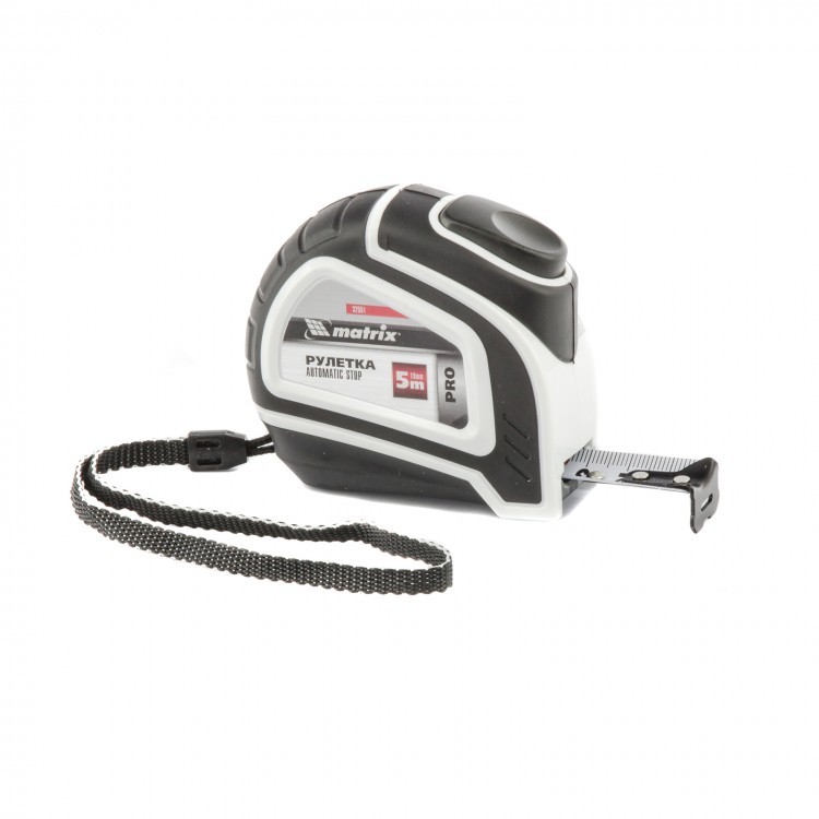 Рулетка Matrix PRO Autostop 32552, 5 м х 25 мм, в двухкомпонентном корпусе, с автоматической фиксацией полотна, используется для измерения объектов и расстояний. Корпус изготовлен из ударопрочного ABS... Показать описание-пластика, а резиновые элементы увеличивают его сопротивляемость механическим нагрузкам. Заклепки надежно фиксируют зацеп на конце измерительного полотна. Рулетка подходит для профессионального и бытового применения.ПреимуществаБлагодаря подвижному зацепу «true zero», нивелирующему толщину крючка, результаты измерений характеризуются высокой точностью.Лента автоматически фиксируется в вытянутом положении, что упрощает и ускоряет измерение.Полотно шириной 25 мм обладает значительной величиной вылета, что облегчает произведение замеров в труднодоступных местах.Нейлоновый ремешок позволяет освободить руки, повесив рулетку на запястье.На корпусе имеется зажим, при помощи которого рулетку можно закрепить на поясном ремне.