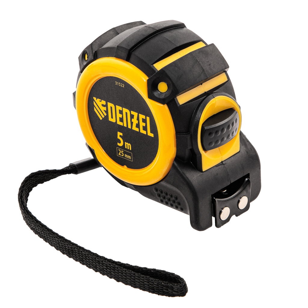 Рулетка 5м х 25мм, двухкомп. корпус, магнитный обрезиненный зацеп// DenzelВопросы по товару
