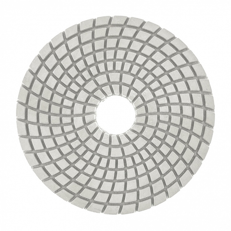 Алмазный гибкий шлифовальный круг Matrix 73510 диаметром 100 мм, с зернистостью P 400, 5 шт. в упаковке, предназначен для мокрого шлифования и используется при проведении строительных, отделочных и ху... Показать описаниедожественных работ. Абразив зернистостью P 400 позволяет проводить чистовую обработку, придавать гладкость гранитным, каменным, керамогранитным и мраморным поверхностям. Рабочая часть выполнена из белого термопластика с алмазным напылением и подходит для использования на цветных, преимущественно белых, материалах. Гибкая основа круга облегчает шлифовку рельефных элементов. Круг используется на УШМ с установленной опорной тарелкой для АГШК.ПреимуществаВысокий рабочий ресурс - в качестве абразива использованы алмазные частицы плотной концентрации, а связкой является устойчивый к трению и нагреву термопластик.Эффективное удаление шлама - на рабочей поверхности имеется большое количество бороздок, благодаря которым она не забивается продуктами шлифования.Быстрая фиксация и замена круга - крепление под липучку позволяет мгновенно закреплять его на опорной тарелке.Удобная комплектация - круги поставляются наборами по 5 штук, которых хватит надолго.