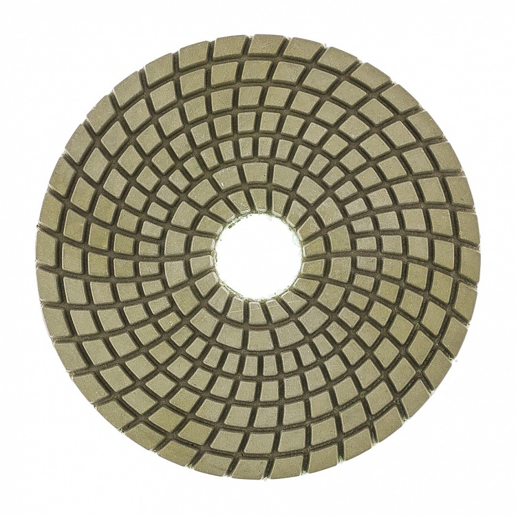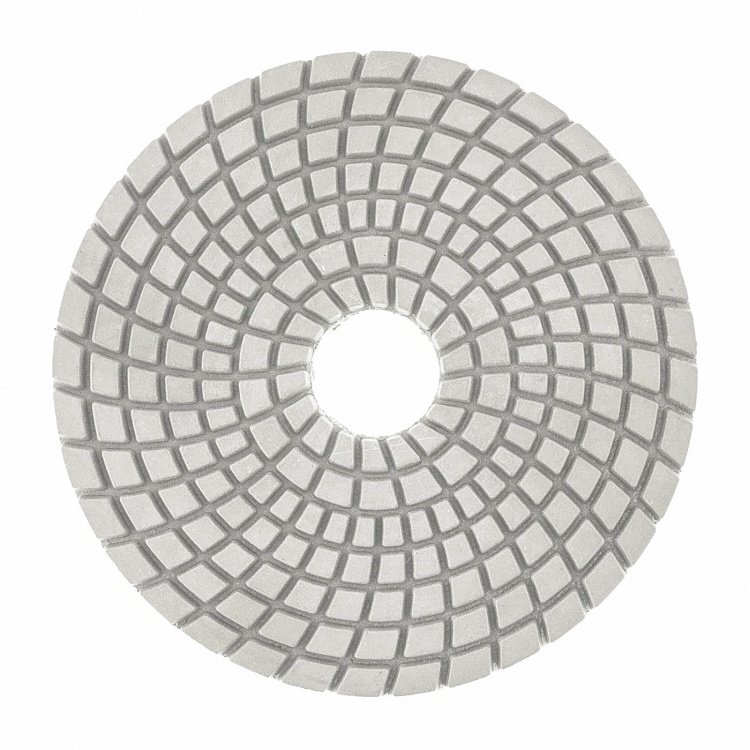 Алмазный гибкий шлифовальный круг Matrix 73508 диаметром 100 мм, с зернистостью P 100, 5 шт. в упаковке, предназначен для мокрого шлифования и используется при проведении строительных, отделочных и ху... Показать описаниедожественных работ. Абразив зернистостью P 100 позволяет проводить черновую обработку гранитных, каменных, керамогранитных и мраморных поверхностей. Рабочая часть выполнена из белого термопластика с алмазным напылением и подходит для использования на цветных, преимущественно белых, материалах. Гибкая основа круга облегчает шлифовку рельефных элементов. Круг используется на УШМ с установленной опорной тарелкой для АГШК.ПреимуществаВысокий рабочий ресурс - в качестве абразива использованы алмазные частицы плотной концентрации, а связкой является устойчивый к трению и нагреву термопластик.Эффективное удаление шлама - на рабочей поверхности имеется большое количество бороздок, благодаря которым она не забивается продуктами шлифования.Быстрая фиксация и замена круга - крепление под липучку позволяет мгновенно закреплять его на опорной тарелке.Удобная комплектация - круги поставляются наборами по 5 штук, которых хватит надолго.