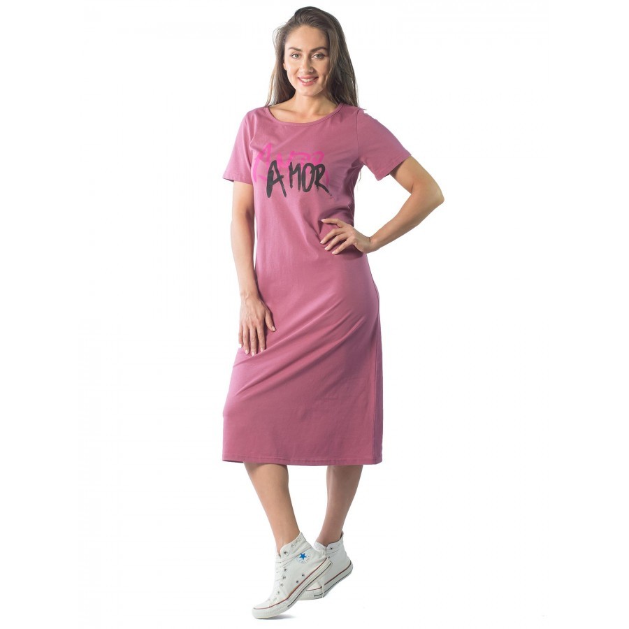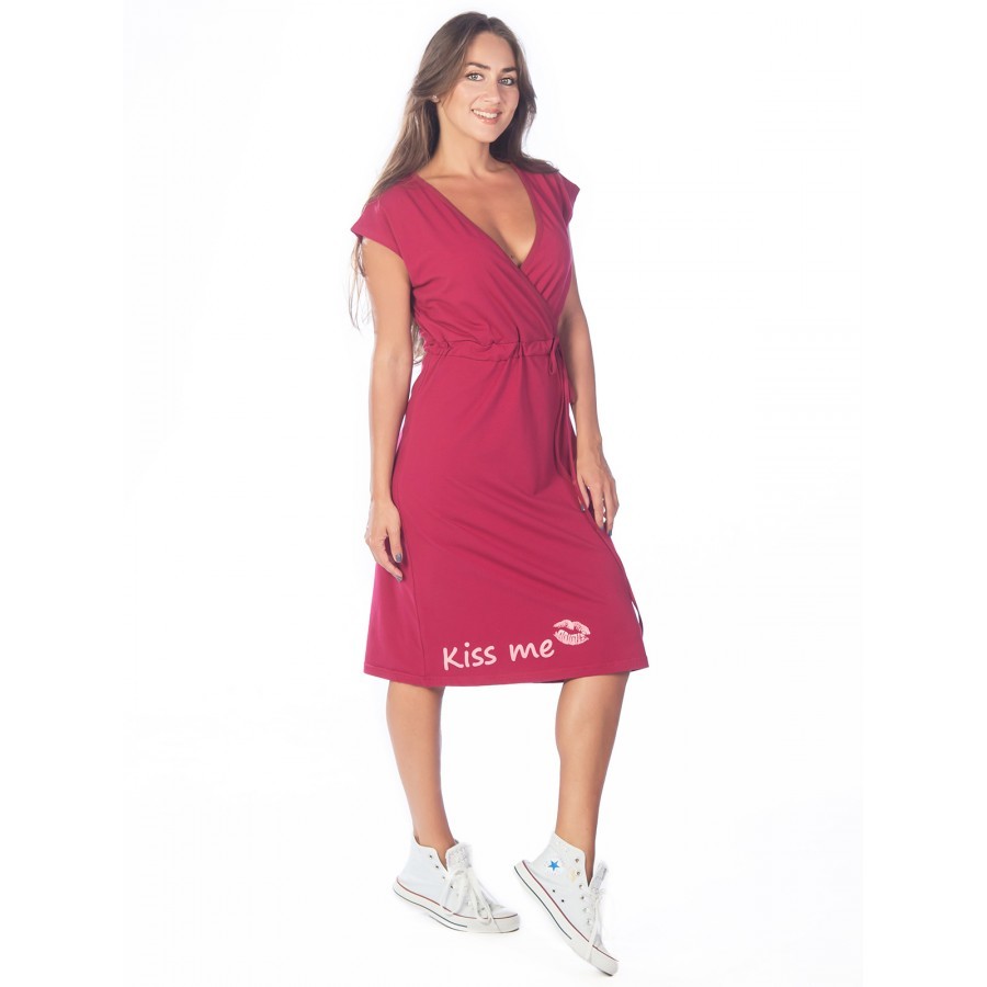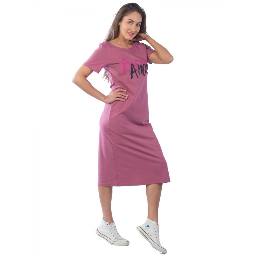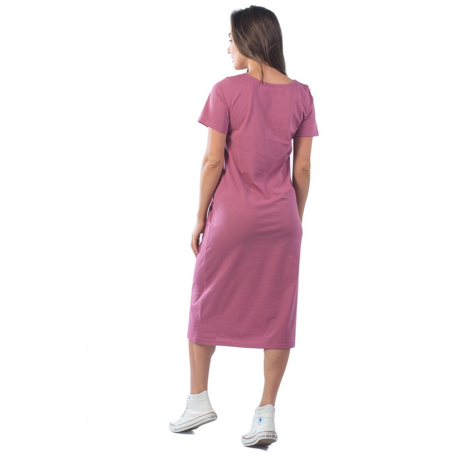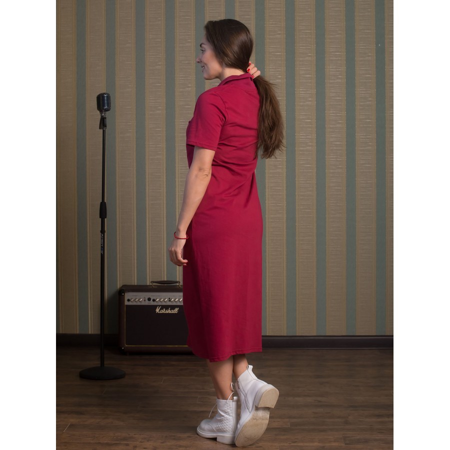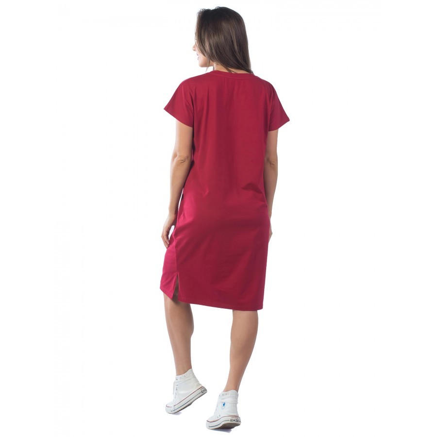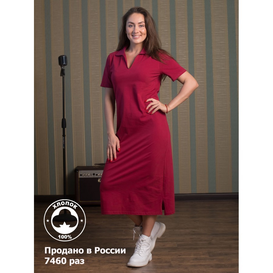 Платье женское длинное в артикуле КП1479 можно приобрести для долгих прогулок с ребенком, не очень торжественных мероприятий, работы, встречи с друзьями, свидания и вечернего променада вдоль набережно... Показать описанией. Вещь хорошо впишется в гардероб в стиле кэжуал, так как бордовое либо же серое платье комфортно в носке и позволяет быстро собрать минималистичный, но красивый образ. При наличии вдохновения можно поэкспериментировать в комбинировании платья с коротким рукавом и различных аксессуаров, например, атласного шейного платка и строгого пояса или плетеного ремешка. Таким образом, платье трикотажное с рукавом практически универсально и подходит как для дома, так и для улицы. Интересен покрой изделия. Благодаря глубокому V-образному вырезу верх не обтягивает грудь, поэтому цельнокройные рукава тоже не стесняют движения и достаточно свободно сидят по плечам. Отложный воротник придает толику официозности и консервативности, поэтому вещь можно вписать не только в повседневные и спортивные луки, но и в классические комплекты. Длина платья женского – макси. Это стоит учитывать девушкам невысокого роста, так как на фотографии рост модели соответствует 172 см. В первом случае подол изделия может доходить до пола. Тогда изделие можно сочетать с ботильонами, клогами и обувью на танкетке. В остальных случаях платье летнее для женщин хорошо смотрится с грубыми ботинками, сандалиями гладиаторами и эспадрильями. Материал платья женского с рукавом – 100%-ная кулирная гладь, которая практически не требует глажки. Благодаря особому плетению нитей, материя невесомая и нежная, поэтому вещь можно также использовать в качестве ночной сорочки и домашнего платья с рукавом. Выделка ткани тонкая, деликатная, однако при носке не просвечивает. Тем не менее рекомендуется поддевать специализированное бесшовное или корректирующее белье, позволяющее дополнительно подчеркнуть достоинства фигуры. Воротник платья для дома выполнен с использованием ткани рибаны, которая не вызывает раздражения в районе ключиц, благодаря своей мягкости. Боковые швы оканчиваются небольшими заостренными разрезами в районе голени. Лучше всего подойдет ручной режим стирки при температуре воды 30 градусов и менее. Не рекомендуется сушить платье длинное с рукавом вертикально, так как есть риск вытягивания. Особое внимание следует уделить зоне воротника, чтобы он не деформировался. Платье повседневное с надписью имеет с левой стороны небольшие символические рисунки, которые могут нести тайный смысл. Например, вариант в коричневом оттенке имеет вышивку с голубыми ландышами, символизирующими скромность и доброту. Красное платье имеет рисунок дерзкой девушки в темных очках, что подчеркивает задор и жизнерадостность обладательницы элемента гардероба. В вариациях других цветов какие-либо узоры отсутствуют. Но даже лаконичная модель цвета хаки позволит своей обладательнице оказаться в центре внимания.